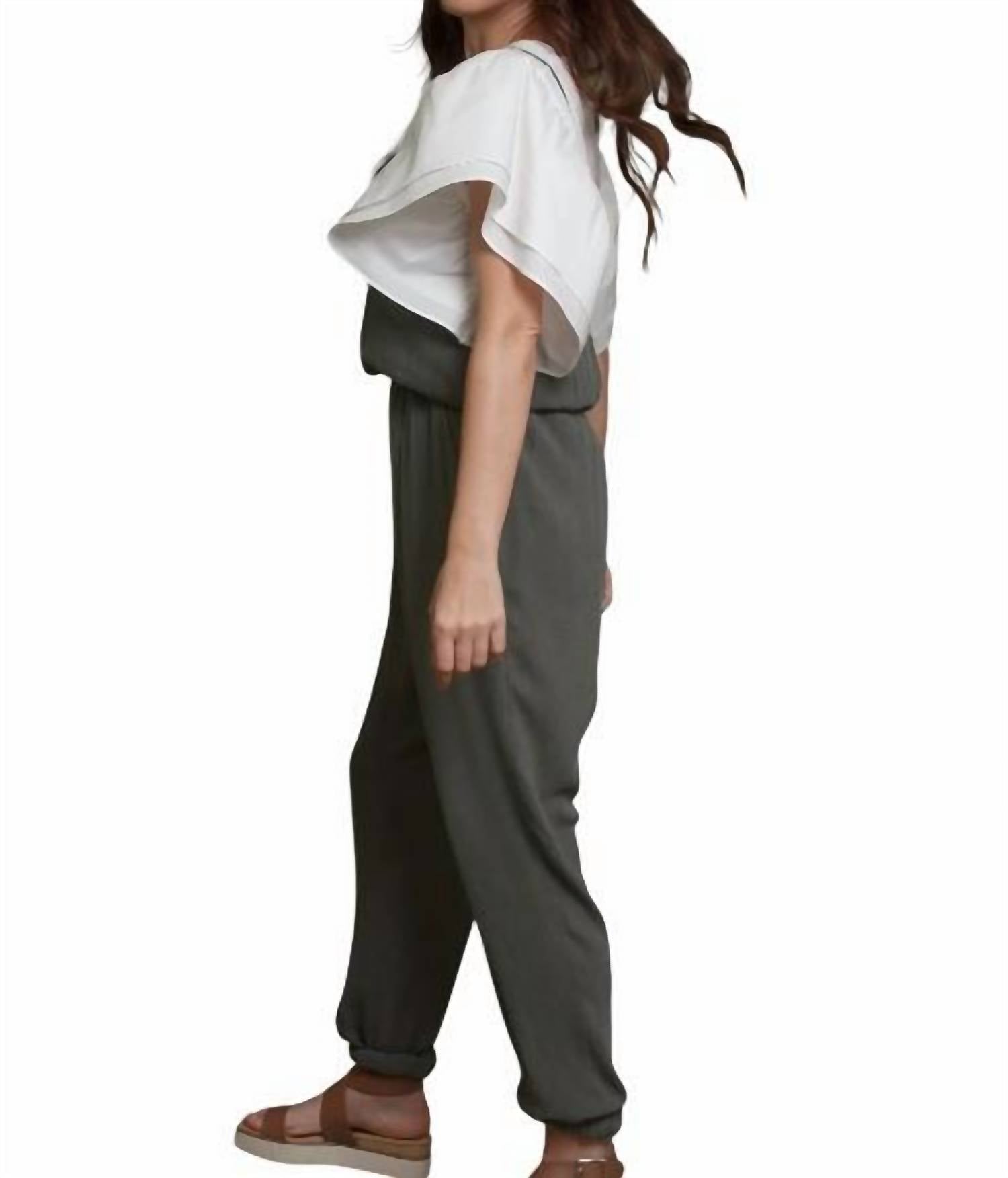 The perfect pant for running around town and looking cool while doing it. The Kaia Sleeveless Jumpsuit by Mod Ref offers a chic and comfortable style with its elasticized waist and jogger bottoms. Designed in a solid olive hue, this piece includes practical side pockets and a double-lined bust for an added touch of sophistication. Made from 100% Rayon, this jumpsuit is a perfect addition to your wardrobe for spring streetwear or a relaxing vacation look. Closure: Pull on. Care: Hand wash recommended.