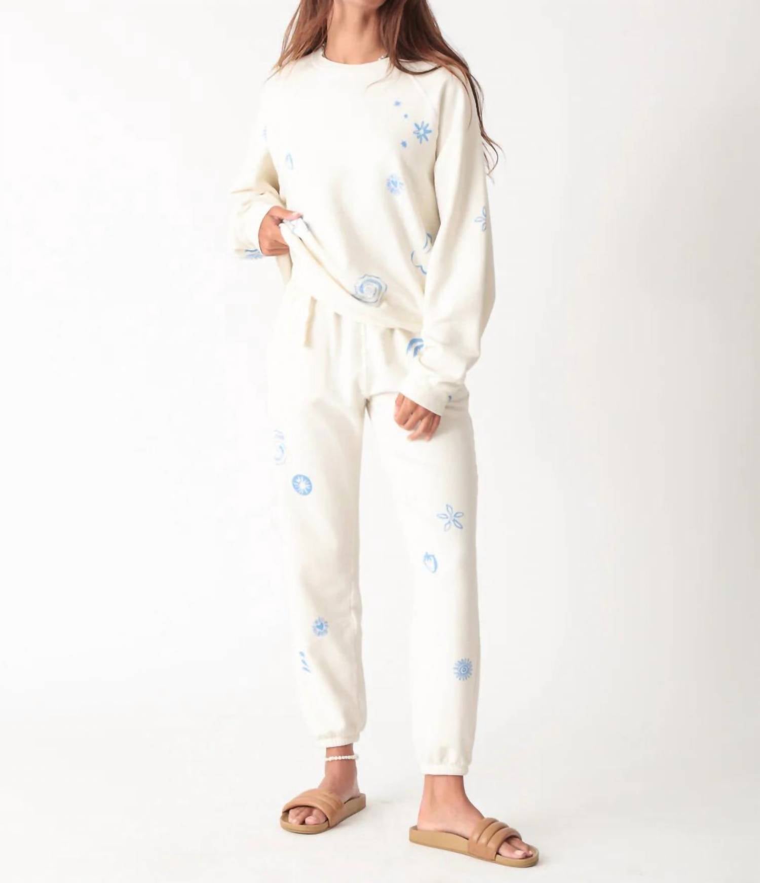 Experience the ultimate in comfort with the Classic Jogger by Electric & Rose, tailored specifically for women. These joggers are crafted from a luxurious blend of 70% Pima Cotton, 25% Modal, and 5% Spandex, featuring a Dream Graphic Ivory pattern for a stylish twist. With practical tie closure and low-rise, straight-leg design, they promise both functionality and modern appeal. Care for these joggers is hassle-free with machine wash instructions. Model is 5'9" and wears a size small.