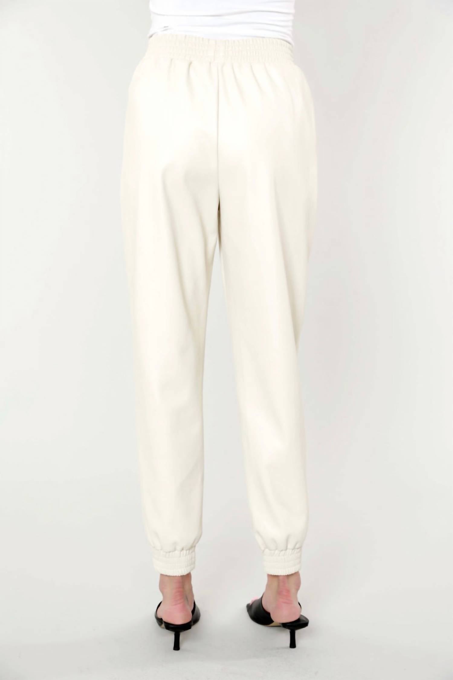 No gym necessary for these cool-girl joggers. Introducing the Faux Leather Jogger by DOLCE CABO, a chic addition to your spring wardrobe in versatile beige. Featuring a pull-on closure with an elastic waistband and hem, these joggers offer a comfortable yet sophisticated look. Made from high-quality vegan leather, they boast a solid pattern and tapered leg style with convenient pockets. Care: Dry clean only.