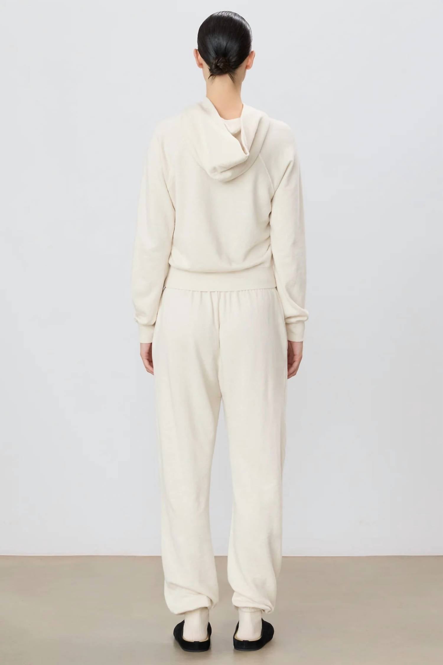 The perfect pant for running around town and looking cool while doing it. Experience casual sophistication with ÉTERNE's Boyfriend Pocket Sweatpant in Bone, designed for a relaxed fit and tapered leg. Constructed from ultra-soft French terry cotton, this high-rise jogger offers a unisex feel with a stylishly solid pattern. Complete with practical pockets, these sweatpants feature a convenient pull-on closure for easy wear. Care for your comfort with machine wash and tumble dry instructions, making them a perfect wardrobe staple for spring vacations and streetwear trends.