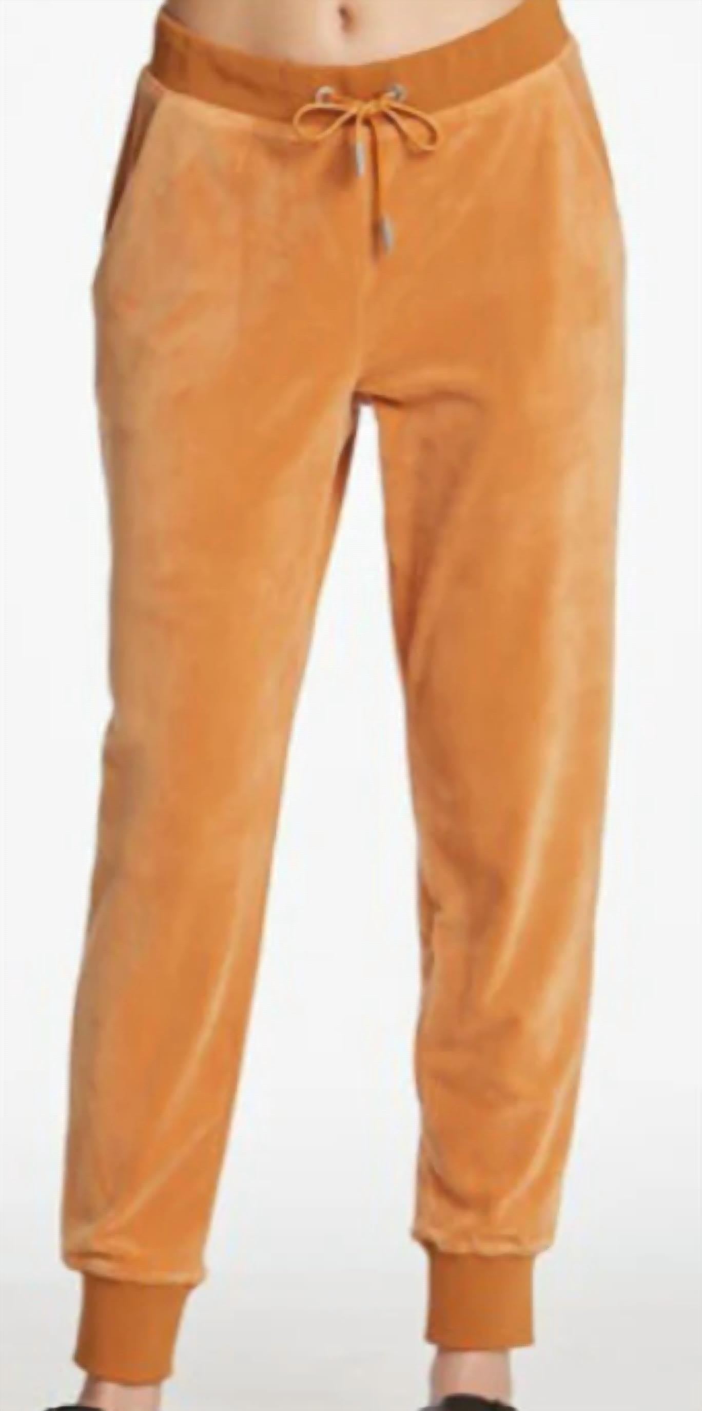The perfect pant for running around town and looking cool while doing it. Luxe Velour Glossy. Plush. Stretchy. Our signature tracksuit fabric—midweight with a velvety sheen and smooth, flexible feel. Juicy bling on back side