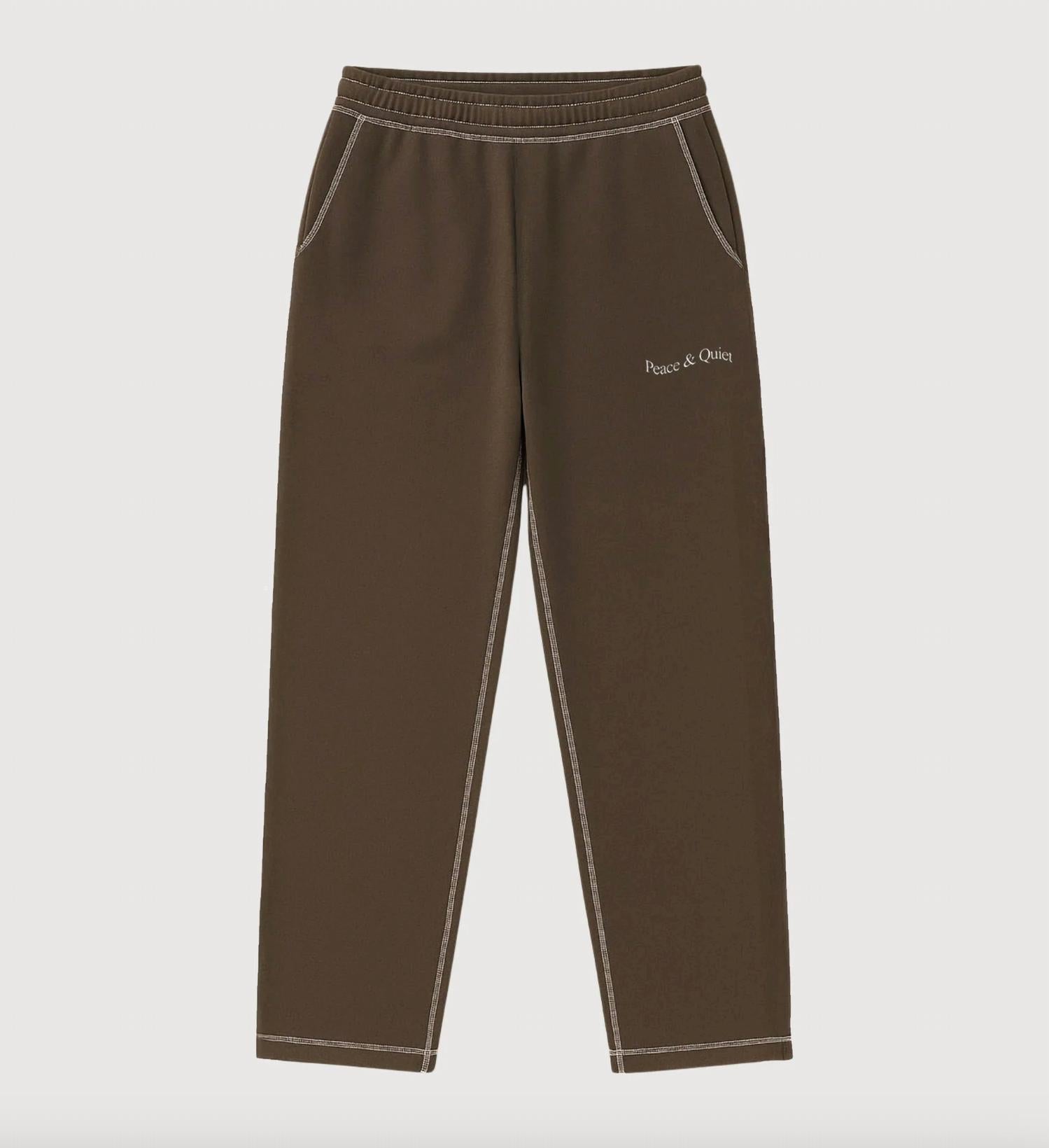 The perfect pant for running around town and looking cool while doing it. Embrace comfort and style with the Museum of Peace & Quiet's Women's Wordmark Reverse Stitched Sweatpants in a rich brown hue. Crafted entirely from 100% cotton, these trousers promise soft wearability and feature a tapered leg design with a high rise for a sleek silhouette. The pants come with a convenient drawstring tie closure and practical pockets, perfect for your daily essentials. Care instructions include machine wash and line dry to maintain their pristine condition. Made in China, these slim-fit sweatpants are a streetwear favorite for the fall season.