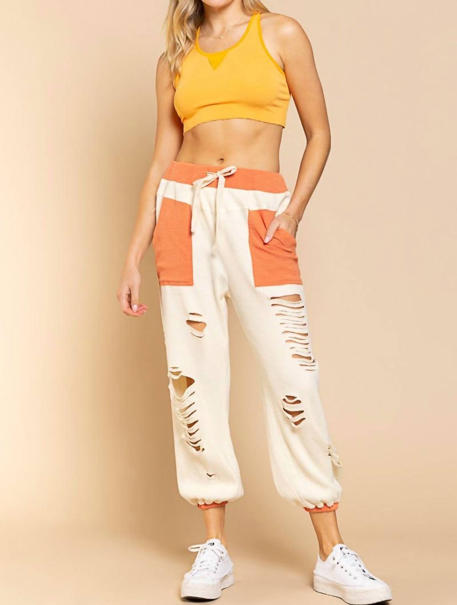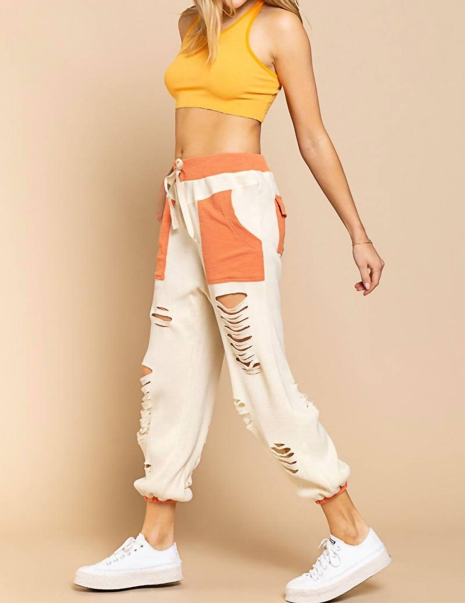No gym necessary for these cool-girl joggers. Meet the Thermal Jogger Pants With Waistband by POL, a chic addition to your fall streetwear collection in a sophisticated ivory hue. These high-rise joggers showcase a relaxed fit and feature textured, distressed details with contrast color pockets and a convenient adjustable strap on the waistband. The pants are crafted from a cotton blend of 78% Cotton and 22% Polyester, ensuring comfort and style, with a pull-on closure for effortless wear. With a length of 27”, a waist of 14”, and hips measuring 19 3/4”, they are perfect for travel or casual occasions alike.