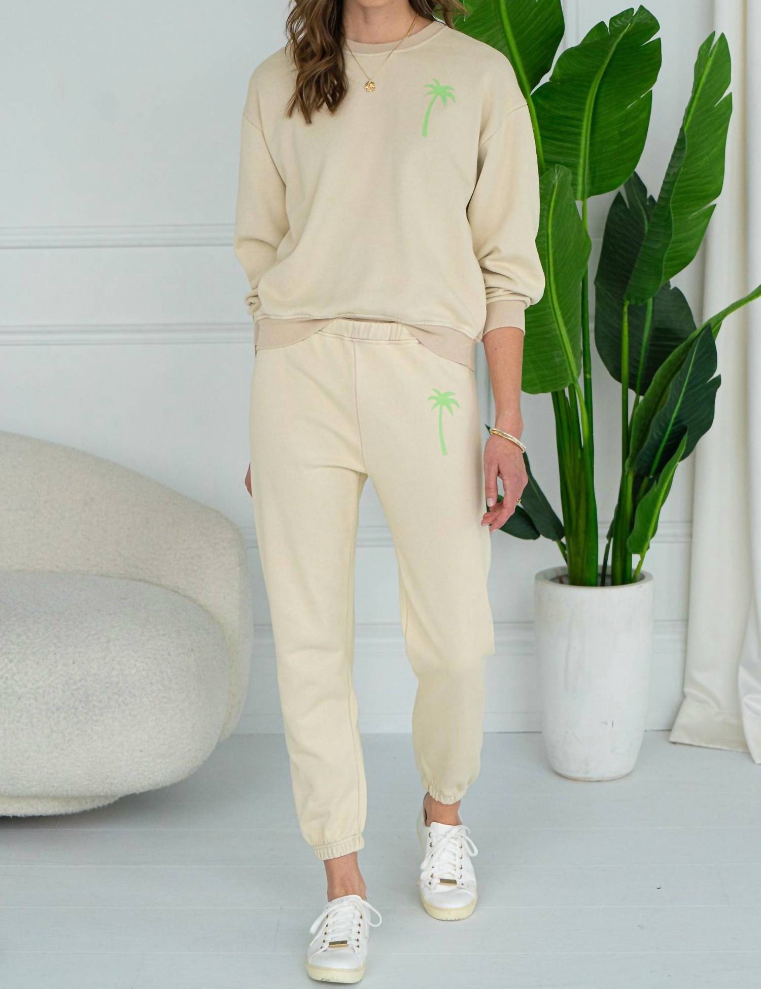 No gym necessary for these cool-girl joggers. These comfortable pants are crafted from 100% cotton in soft French terry fabric, offering a relaxed and cozy feel. Designed with an easy pull-on style, they feature a flexible waist for a secure fit. A palm tree screen print adds a touch of laid-back style to the look. For best care, hand wash cold.