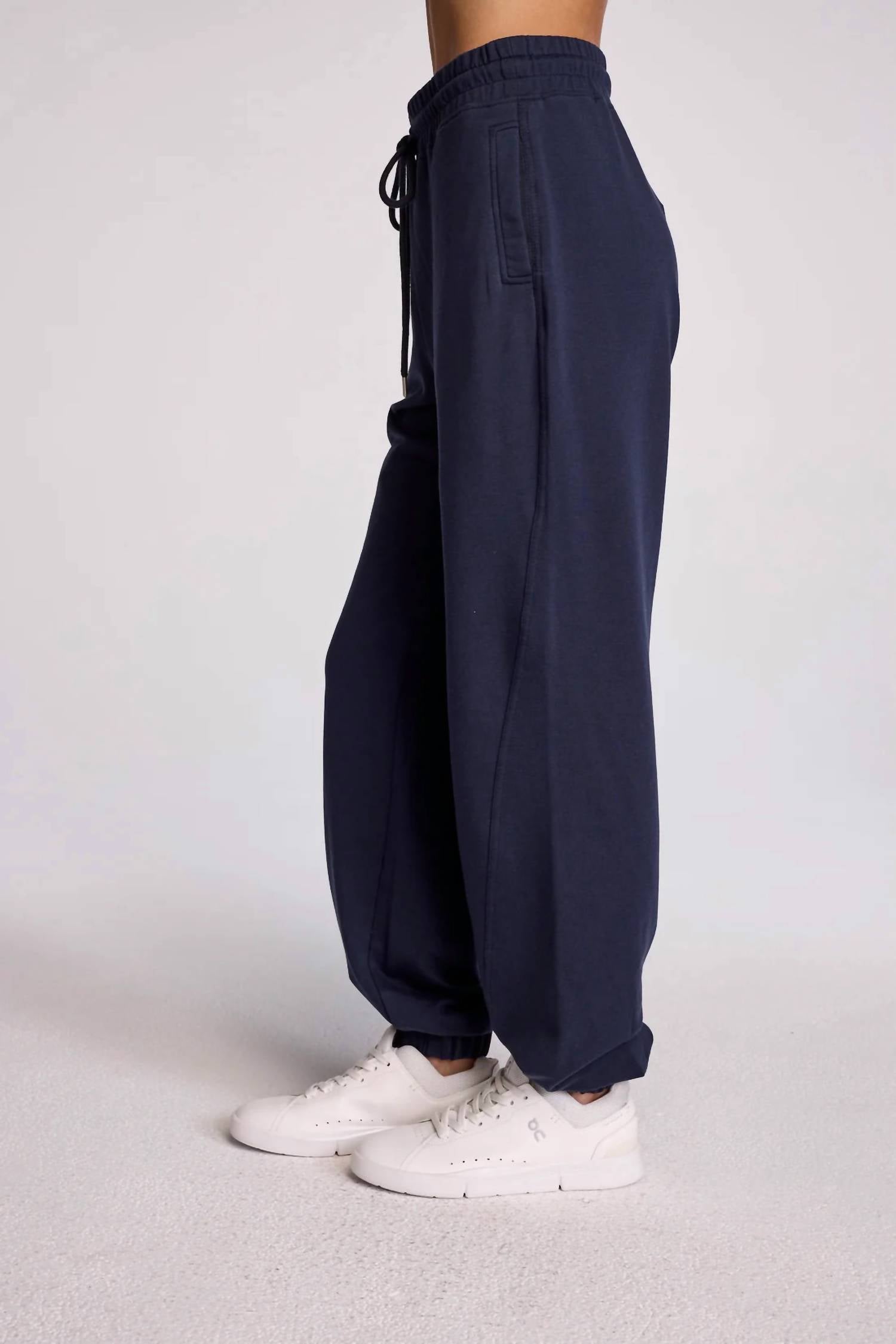 The perfect pant for running around town and looking cool while doing it. The Blake Joggers Sweatpants by Sundays offer a relaxed fit for effortless style in a chic navy hue. Crafted from a comfortable cotton blend of 58% Cotton, 37% Polyester, and 5% Spandex, these joggers feature a full-length design with a tapered leg and mid-rise waist. The pull-on elastic waistband and elastic cuff ensure ease of movement, complemented by convenient on-seam pockets. Closure: Tie closure. Care instructions include machine wash cold with like colors and tumble dry on low.