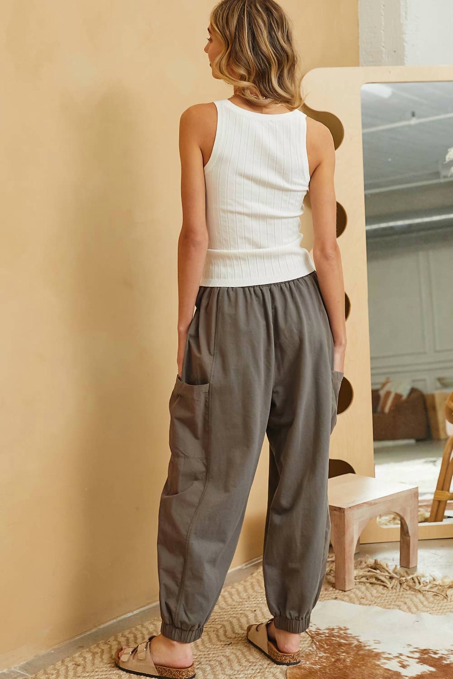 No gym necessary for these cool-girl joggers. Introducing the Casual Comfy Wide-Leg Harmes Joggers by Sweet Lovely by Jen, perfect for a relaxed yet stylish look this fall. Crafted from 100% cotton in a monochrome stone charcoal hue, these joggers feature a mid-rise waist with a pull-on closure and an elastic waistband, ensuring maximum comfort. The relaxed fit and wide leg design with a tapered ankle create a chic silhouette, complemented by big pocket details and contrasting fabrication. Imported and machine washable, these joggers are a practical choice for your vacation and gatherings.