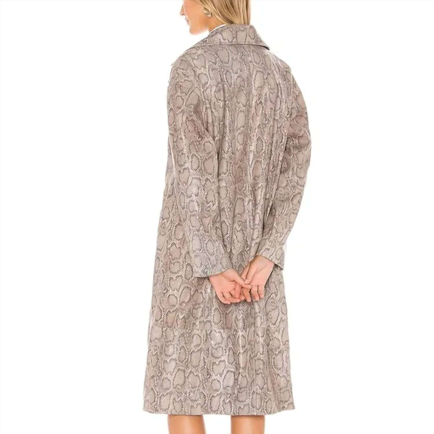 Meet Free People's Snakeskin Duster Jacket, a statement piece in a multi-colored animal pattern designed for fashion-forward women. Crafted with long sleeves and a smart collar neckline, it adds a touch of sophistication to any outfit. With convenient pockets, this duster-length jacket is versatile and practical. Care: Dry clean only, lay flat to dry.