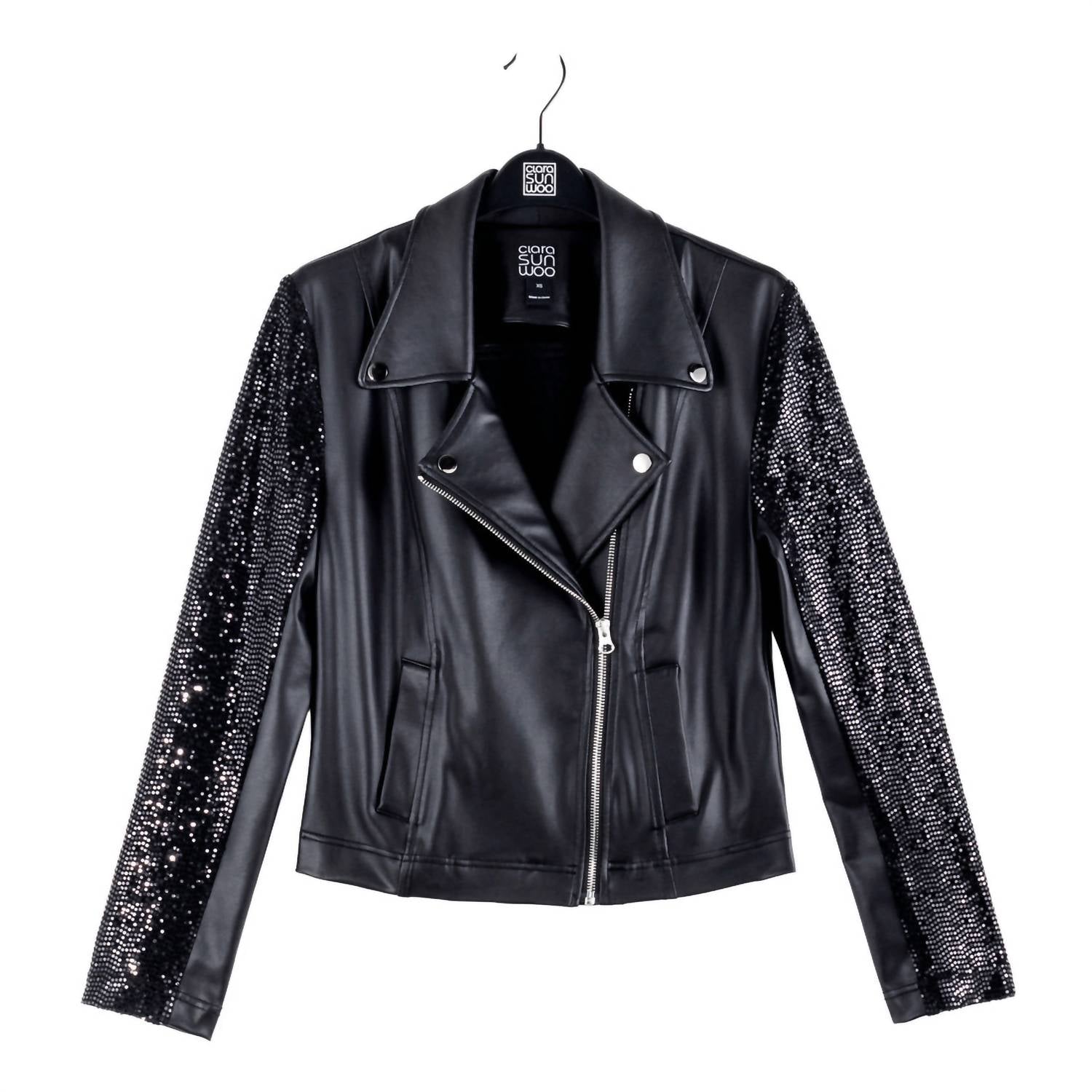 Clara Sun Woo - Sequin Knit Liquid Leather™ Sheen Moto Jacket