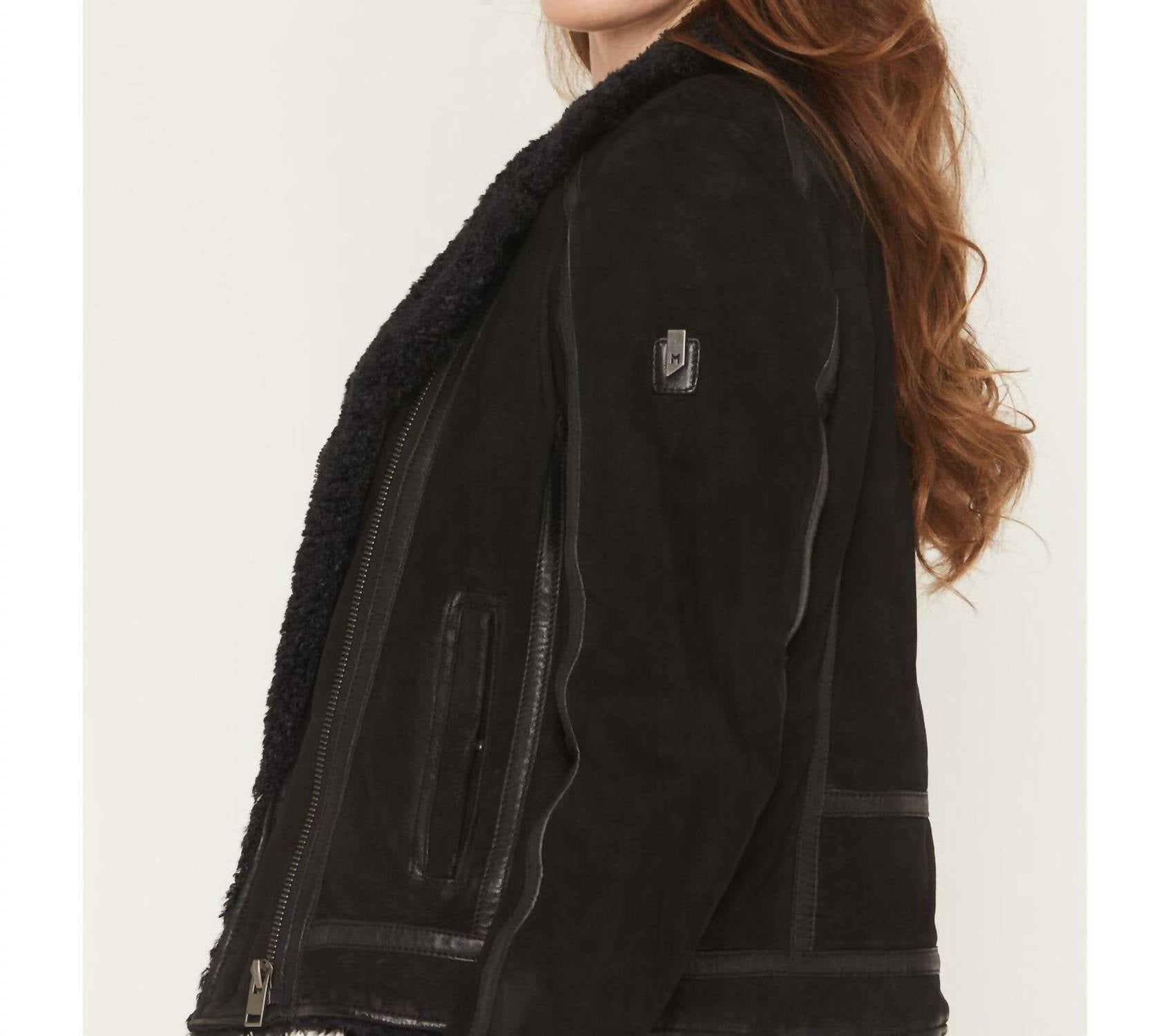 Soft leather, impeccable design. This leather jacket is a win-win. Introducing the Rila Leather Jacket by MAURITIUS, a perfect blend of rugged and refined style. Crafted from soft nubuck leather, this black jacket features a cozy teddy collar and cuffs, ideal for cooler fall days. Designed with long sleeves and a textured pattern, it offers a comfort fit and zip closure for ease of wear. Please note that specific wash and dry instructions are not available for this product.