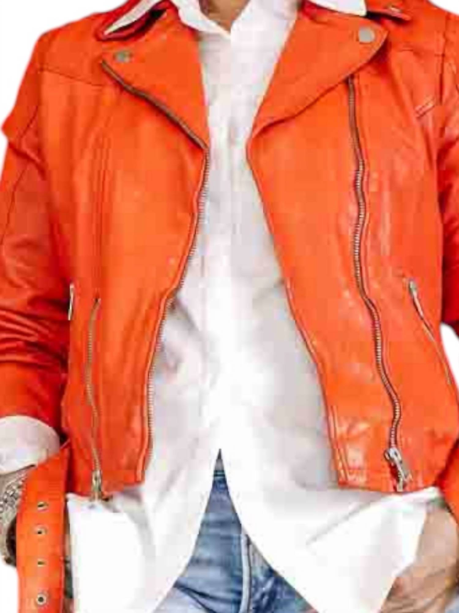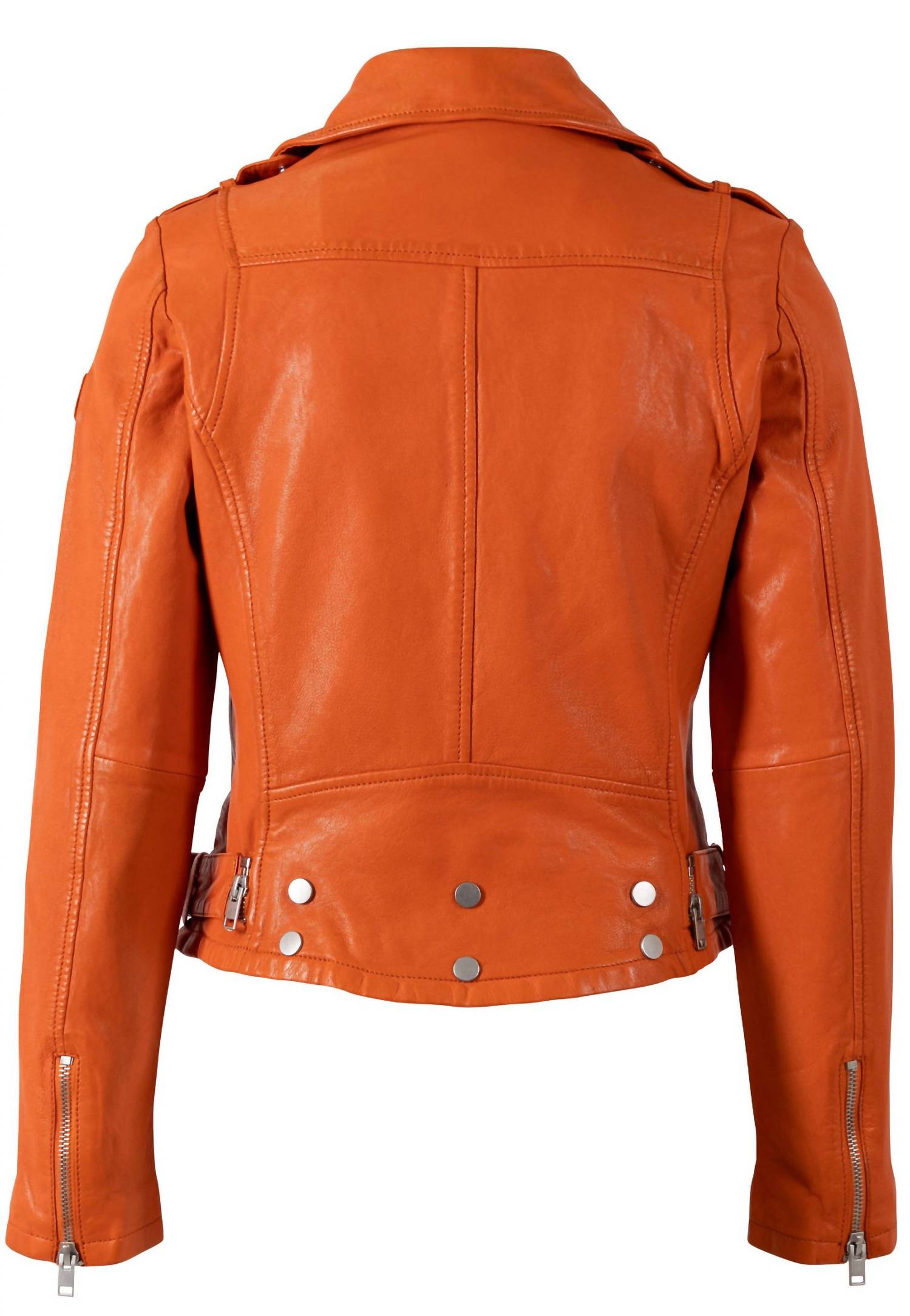 Everyone needs a leather jacket like this in their closet. The Wild RF Leather Jacket by MAURITIUS is a women's leather jacket in a striking Spice color. Designed with long sleeves and a chic, waist-cinching belt, it offers a sleek, snug fit that enhances your silhouette. This solid-patterned jacket features a practical zip closure and includes pockets for added convenience, perfect for the maximalist trend this fall season. Care: Dry clean only.