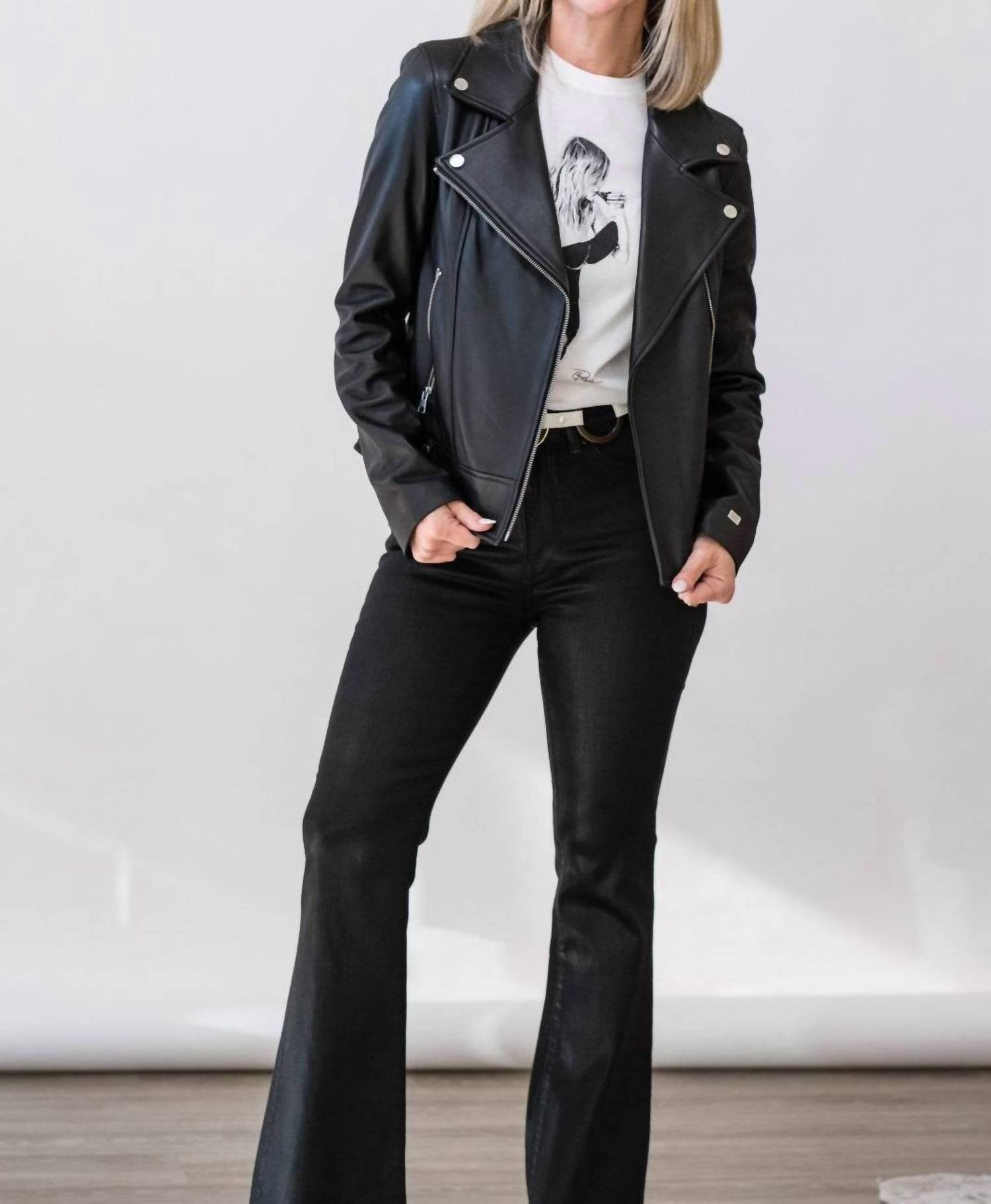 Soft leather, impeccable design. This leather jacket is a win-win. Introducing the Ryder Leather Jacket by SOIA&KYO, a solid black staple designed for any concert or casual outing. This long sleeve jacket, meticulously crafted from high-quality leather for durability and comfort, includes a practical zip closure. With the versatile design and tailored silhouette, it's fitted with functional pockets and a classic collar that effortlessly elevates any outfit. Care instructions recommend dry cleaning to maintain its sleek appearance.