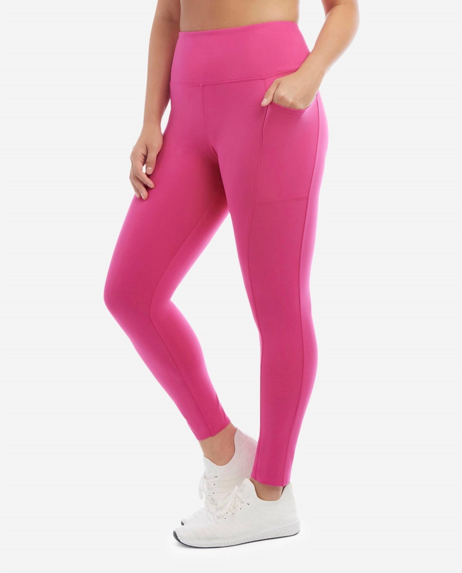 These leggings are crafted from a 4-way stretch, moisture-wicking fabric composed of 82% Polyester, 13% Rayon, and 5% Spandex, ensuring a comfortable, flexible fit. The pull-on style features bonded side pockets and a high-rise waistband for a sleek silhouette. With a 7/8 length and 25" inseam, these leggings are perfect for any active lifestyle.