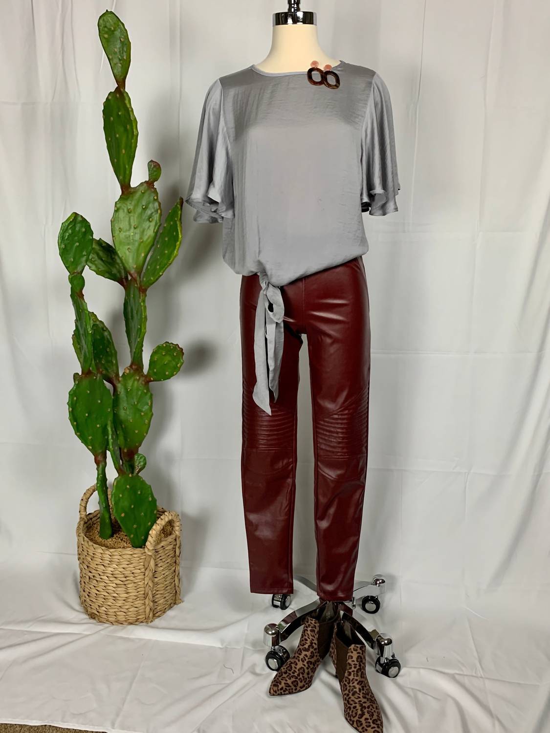 You'll be reaching for this best-selling legging all season long. Upgrade your wardrobe with the Venice Moto Jeggings by Easel, offering a sleek and stylish fit in striking red. These vegan faux leather skinny pants feature a solid pattern and slim fit, perfectly suited for minimalist fall fashion. Designed with a skinny leg style and a convenient pull-on closure, these jeggings ensure maximum comfort without compromising on style. Ideal for women who appreciate trendy and stylish clothing suitable for Thanksgiving and fitness outings alike.