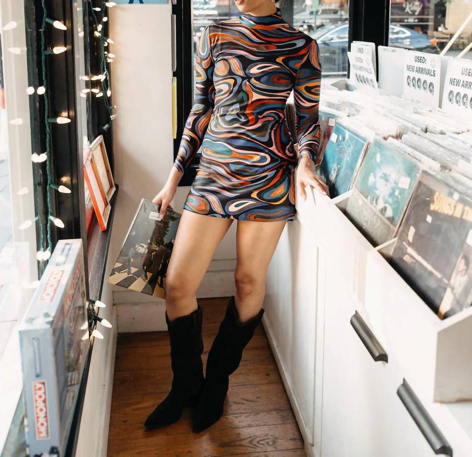 Cute and comfortable, this long sleeve dress has it all. Meet the Dottie Mini Dress by SMITH & QUINN, a sleek and sophisticated choice for Fall evenings. This slim-fitting, long sleeve turtleneck dress in the chic Vinyl Baby color is made from 85% Polyester and 15% Elastane, ensuring a wrinkle-resistant finish that's machine washable. Its short length measures 33" from shoulder to hem, offering a modern bodycon silhouette. Designed with a seamless pull-on closure, the dress is as practical as it is stylish, making it a must-have for New Year's Eve celebrations or dinner parties.