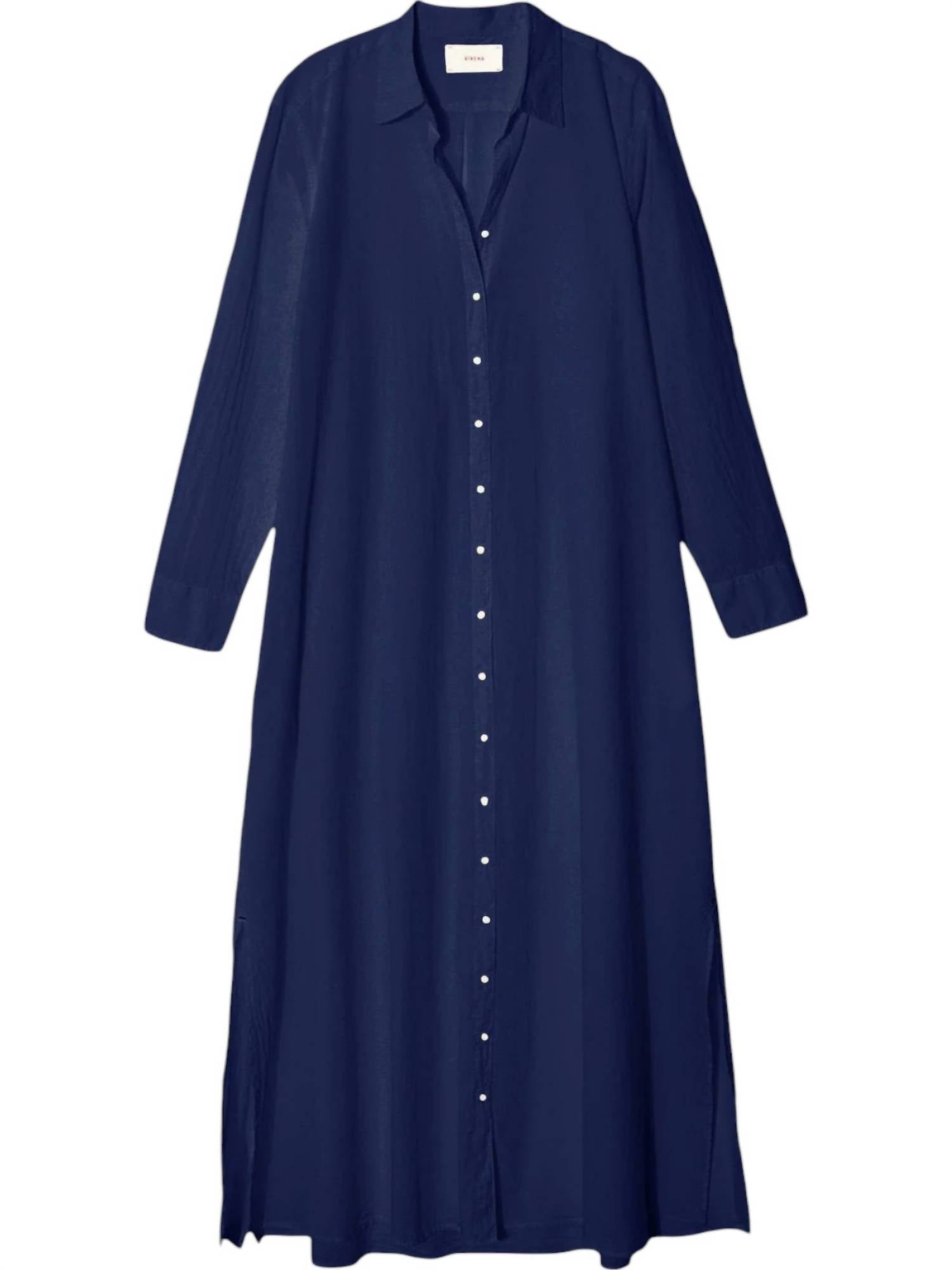 Perfect blend of comfort and timeless style. Long sleeve shirtdress. Expertly crafted from 100% cotton poplin. Offering a breathable and lightweight feel. With a classic button-front closure and tailored silhouette. Features practical side seam pockets and hem side slits for added ease. Machine wash on a gentle cycle and lay flat to dry.