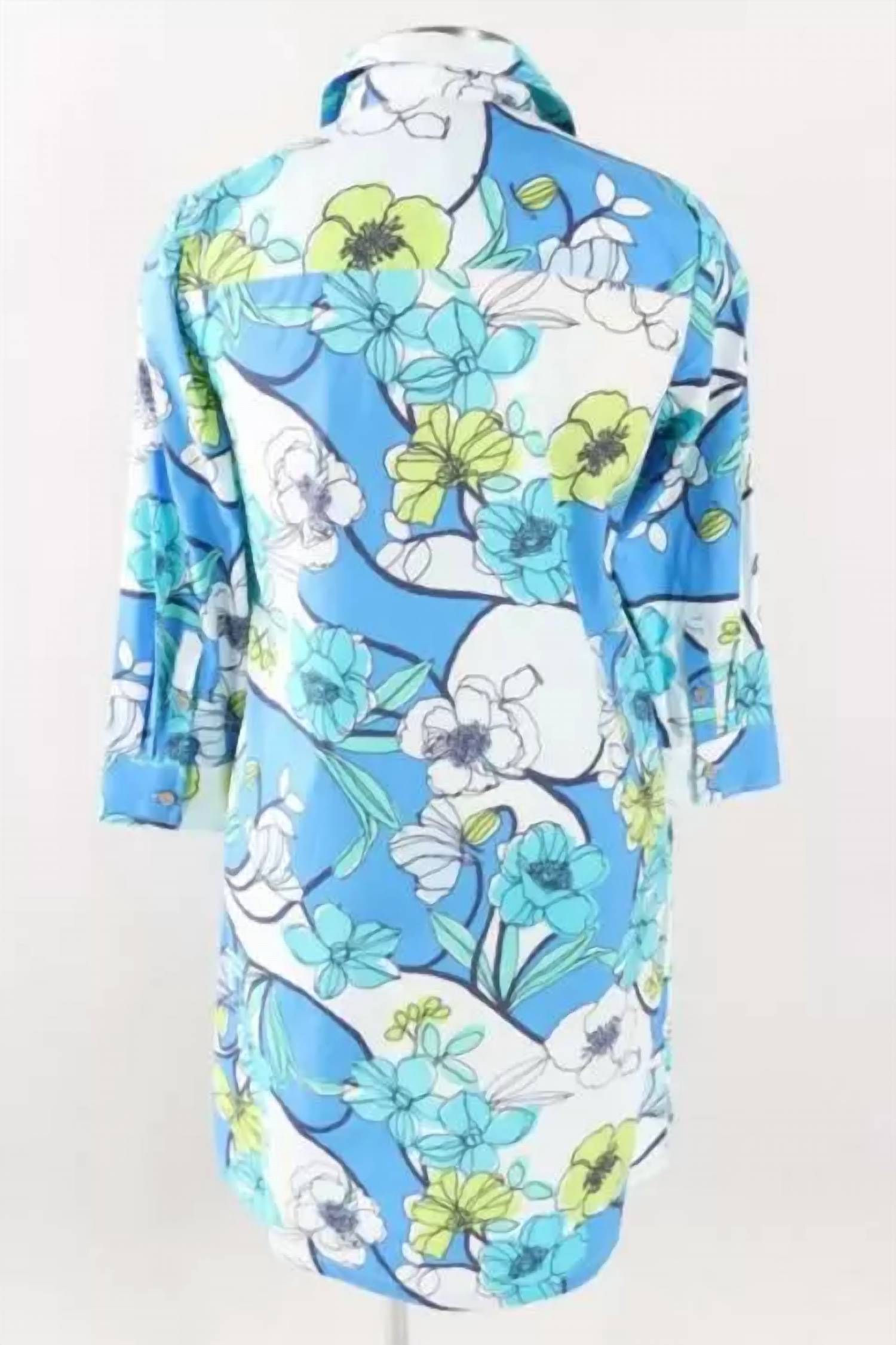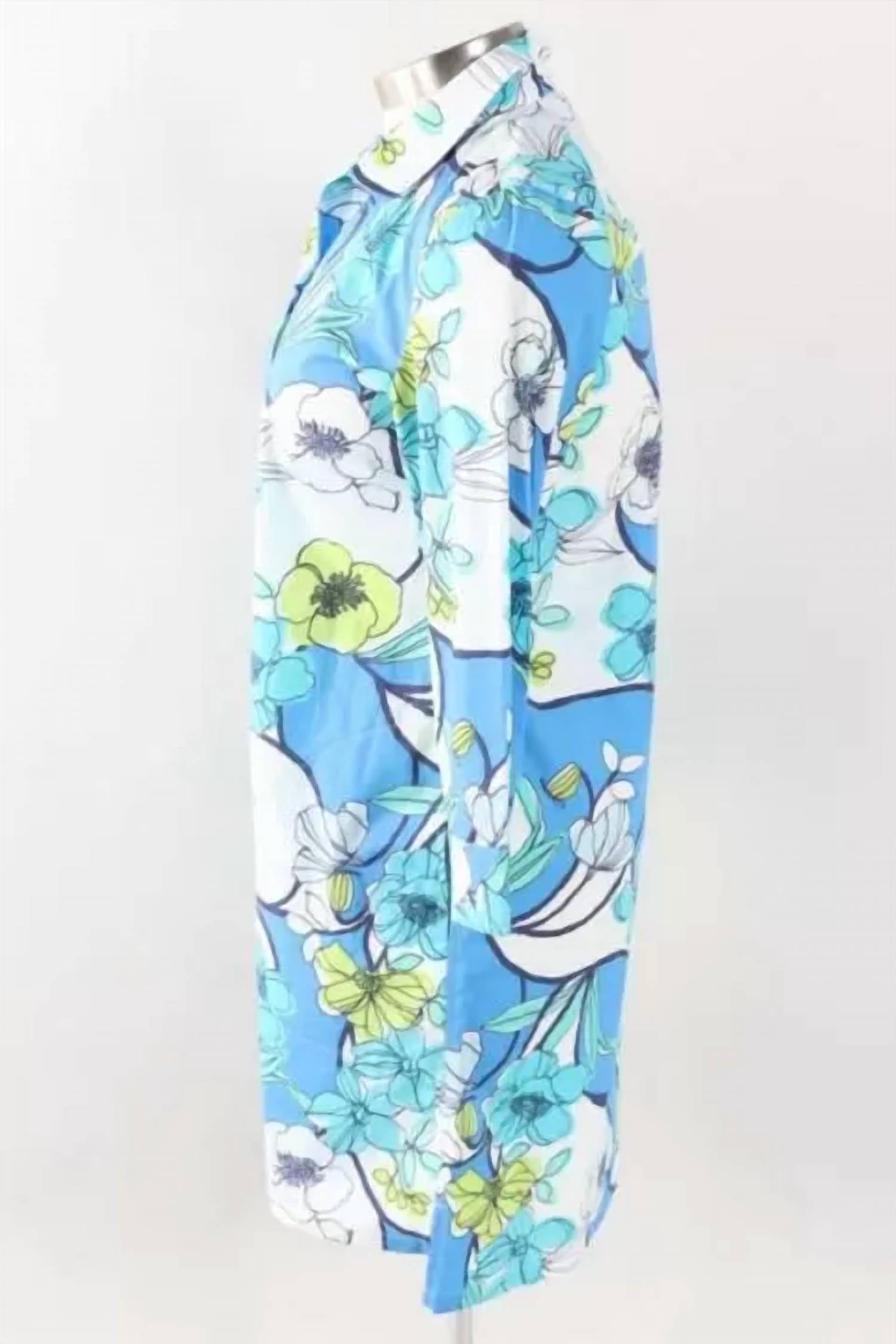 The pefect long sleeve dress for those cooler months. The bright coastal floral print of the Anywhere Dress is perfect for a summer outing. It features a full button front closure, wrist length sleeves with a button closure and pockets. This is a versatile wardrobe addition that can be worn as a dress or as a duster and work ar the office or a a special summer event. Machine wash cold gentle, tumble dry low Small measures 40" bust, 37-38.5" length Medium measures 42" bust, 37-39" length Large measures 44" bust, 38-39.5" length XL measures 46" bust, 38-39.5" length