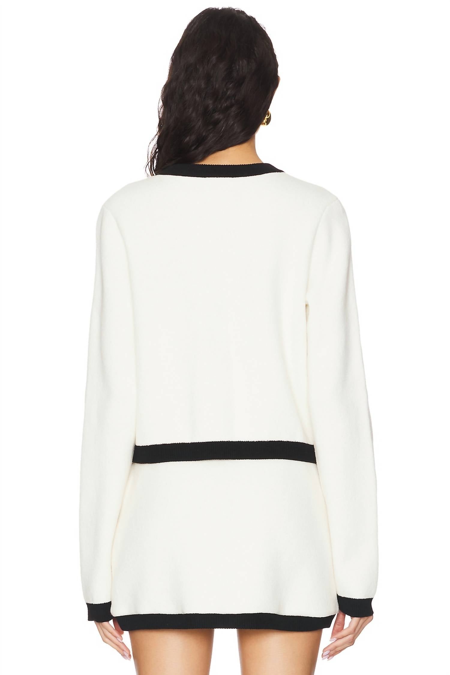 A flattering yet comfortable dress you'll be reaching for season after season. Elevate your fall wardrobe with the Kit Cardigan by Show Me Your Mumu, a chic addition in cream and black. Featuring long sleeves and a patterned crewneck design, this preppy cardigan is crafted from an 80% cotton, 20% nylon blend. Complete with button closure and convenient pockets, it's perfect for travel or Thanksgiving gatherings. Made with care, this imported piece is to be hand washed for lasting wear.