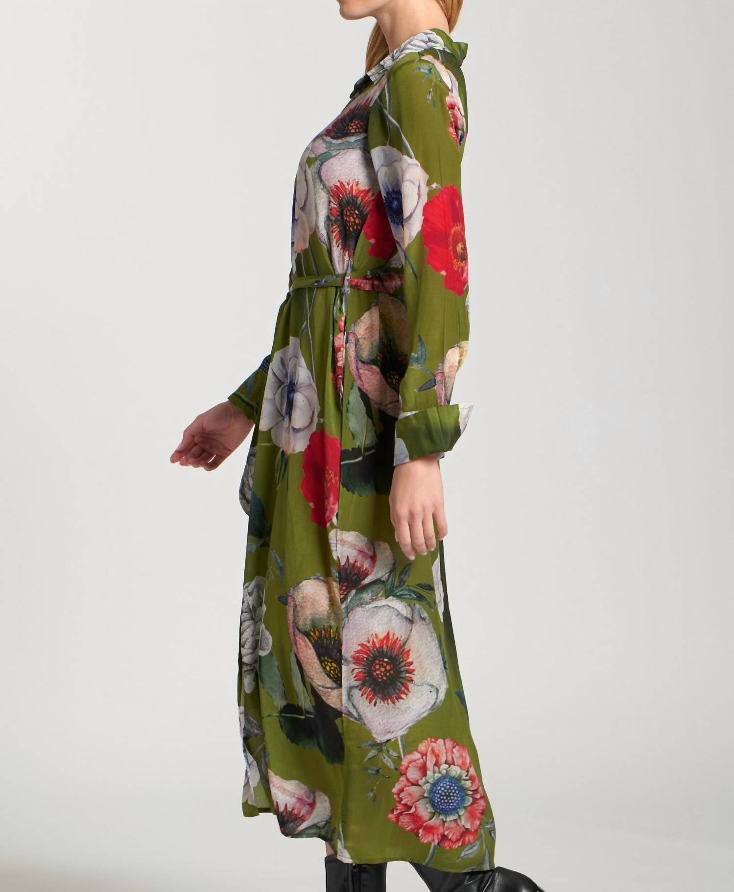 Cute and comfortable, this long sleeve dress has it all. The APNY Half Placket Floral Maxi Dress, in the captivating Poppy Fields pattern, is a stunning choice for any dinner party or spring celebration. This women's dress showcases long sleeves and a graceful V-neck, crafted from a 64% Cupro and 36% Viscose blend. The shirt silhouette and flowing design, complemented by a removable belt and sleek half-button placket, enhance its boho chic appeal. Closure: Pull-On. Care: Machine wash. Ideal for celebrating St. Patrick's Day or any festive occasion.