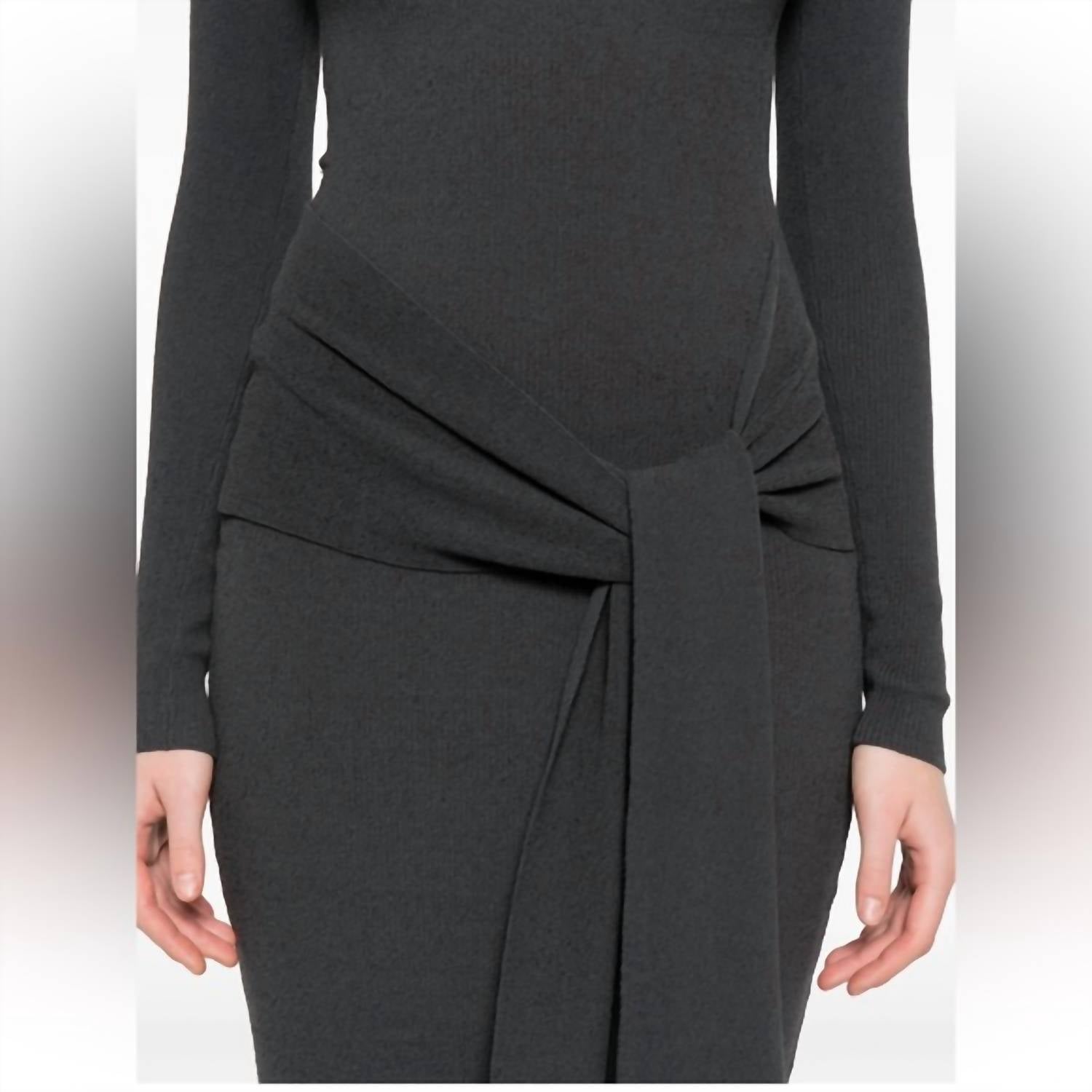 Cute and comfortable, this long sleeve dress has it all. Chic dress with long sleeves. Features a stylish bow detail. Perfect for elegant occasions. Color: Gunmetal 75% Cotton, 25% Nylon