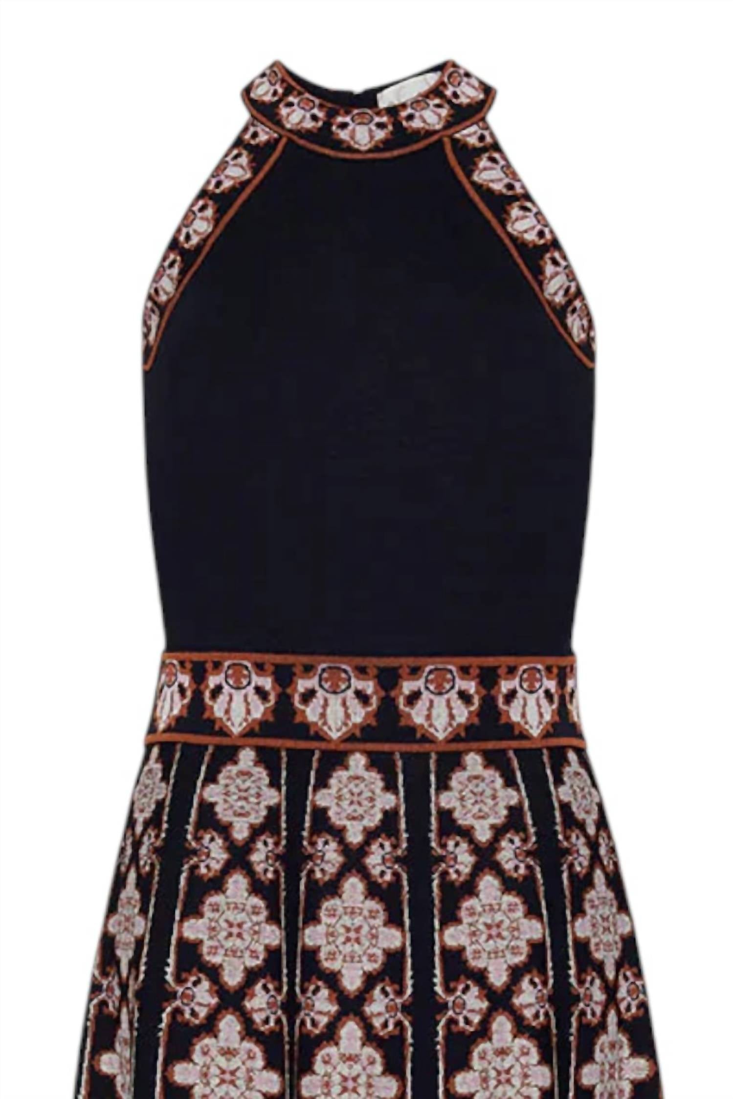 Cute and comfortable, this long sleeve dress has it all. Introducing the Women's Sandrinna Dress by Cara Cara, a statement piece in sophisticated black for your next holiday party. This sleeveless dress features a stylish halter neckline and a jacquard flare midi skirt that exudes Boho Chic elegance. Crafted from 80% Viscose and 20% Nylon, this fit and flare design is secured with a side zipper closure and has an elastic tunnel at the waist for comfort. Care for this patterned dress with ease as it is machine washable.