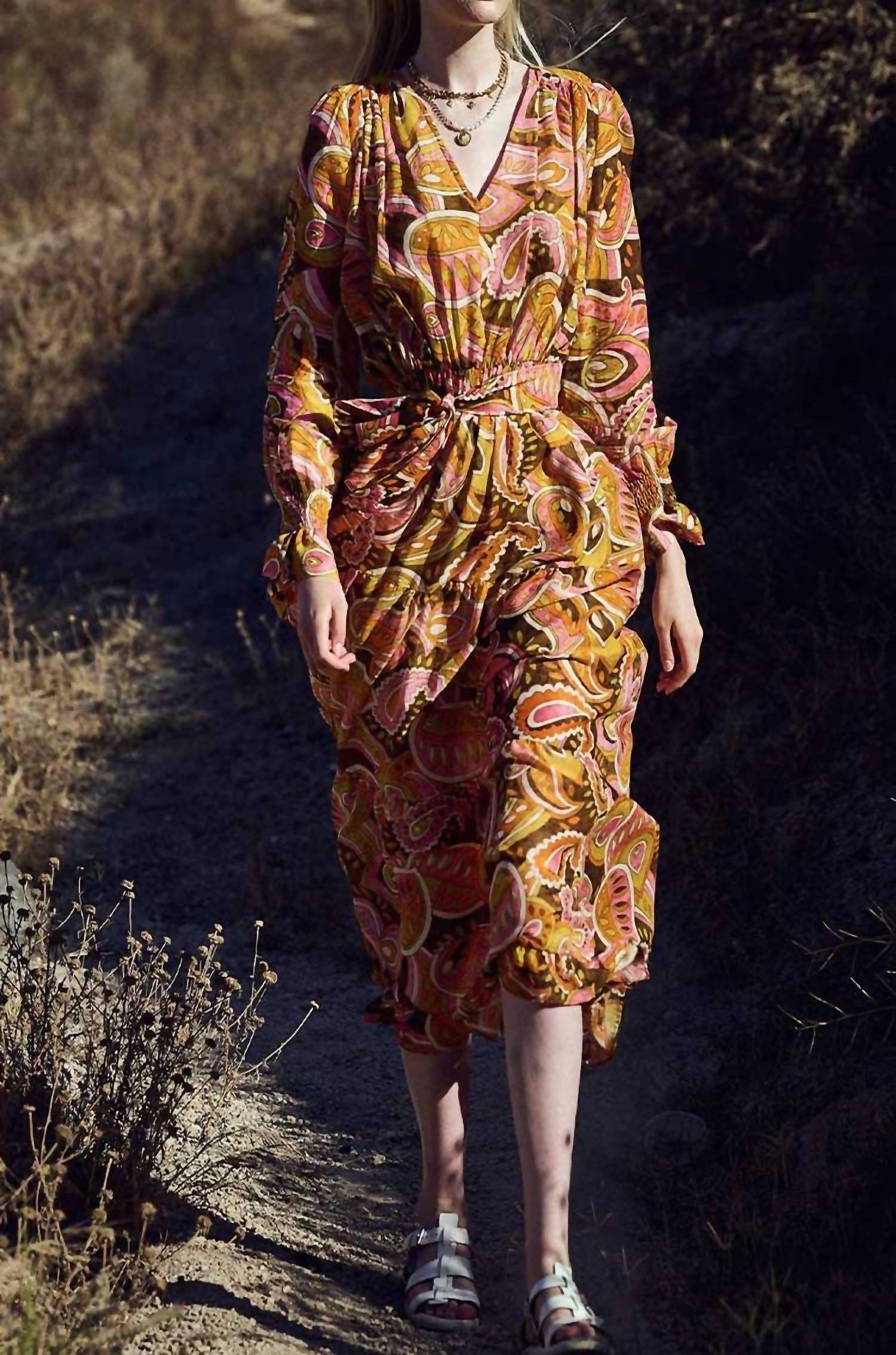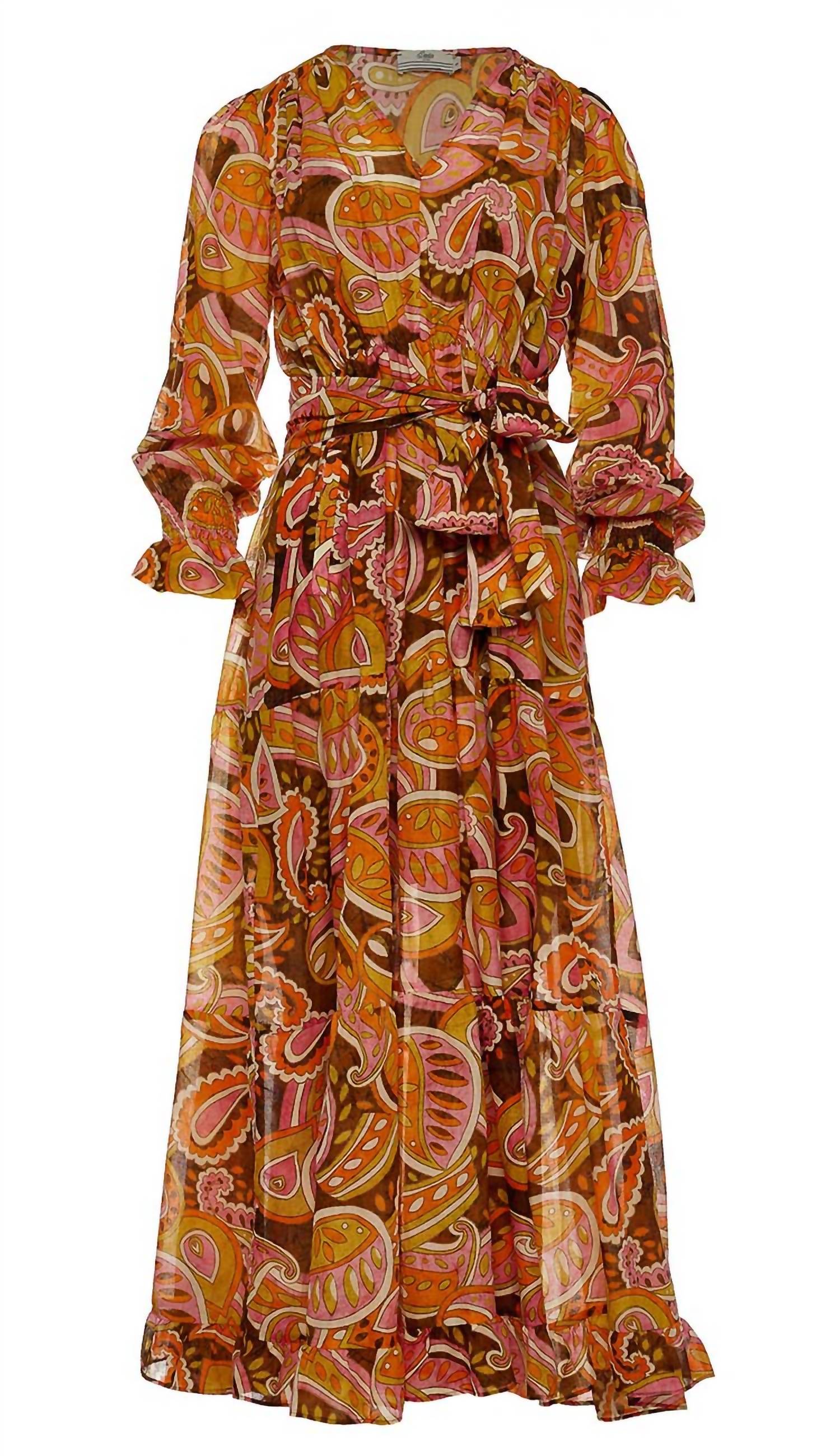 Cute and comfortable, this long sleeve dress has it all. Unveil sophistication with the Martselo Midi Dress by Devotion Twins, featuring elegant long sleeves and a flattering V-neckline. Crafted from 100% superfine lightweight cotton, this multi-color fit and flare dress offers a chic and practical midi length, perfect for lively gatherings. Proudly made in Greece, it showcases an exquisite pattern in hues of pink, orange, and brown. Designed for easy wear with a pull-on closure, this stylish piece is machine washable for effortless care.