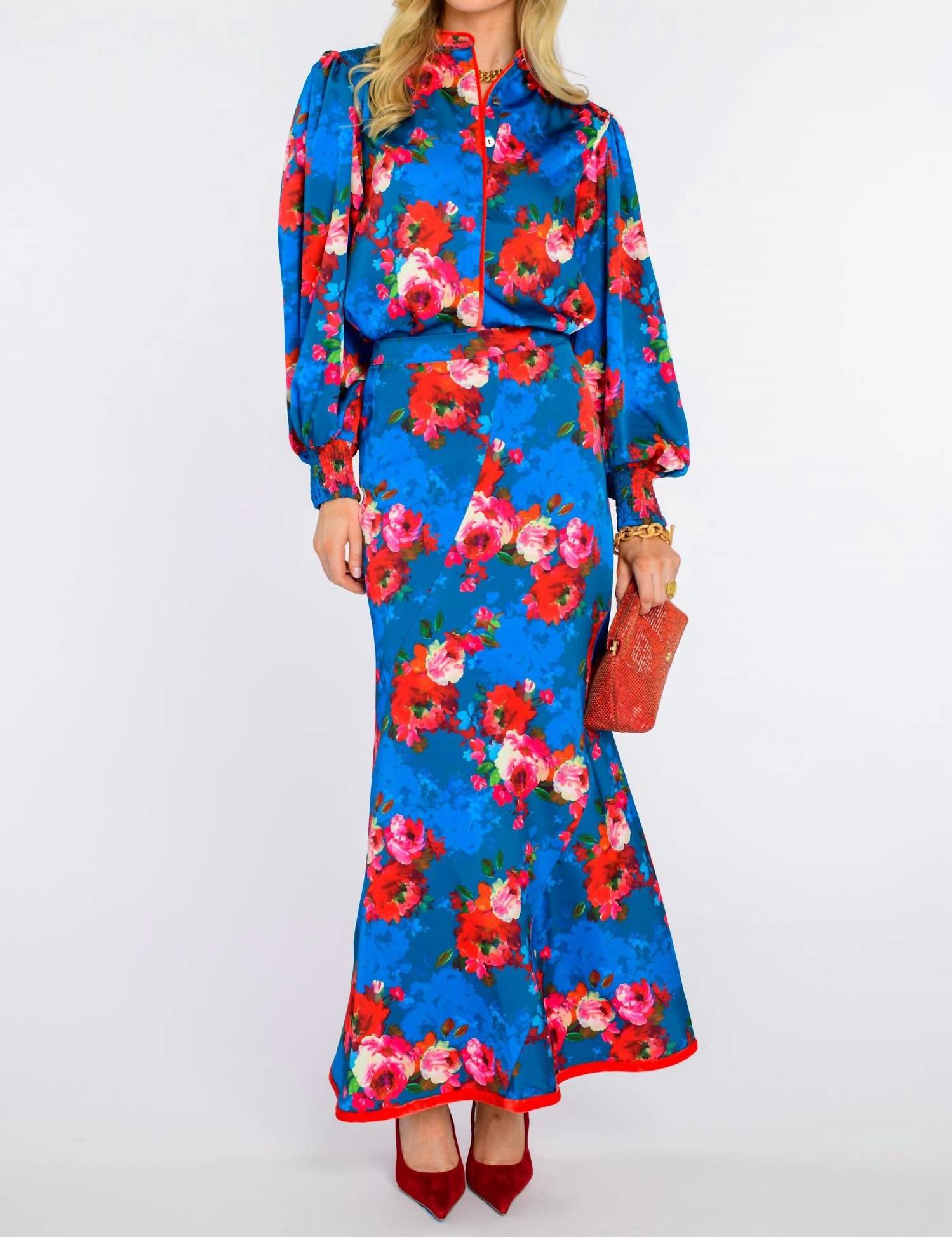A flattering yet comfortable dress you'll be reaching for season after season. Discover the Women's Emily Top by Elizabeth James The Label, a vibrant choice in holiday chintz teal perfect for your spring vacation wardrobe. Featuring long sleeves and a floral pattern, this maximalist A-line silhouette combines elegance with a touch of whimsy. The top includes functional pockets and a classic collar, elevating its practicality and style. Designed with a pull-on closure for easy wear, this piece is a delightful addition to any occasion.