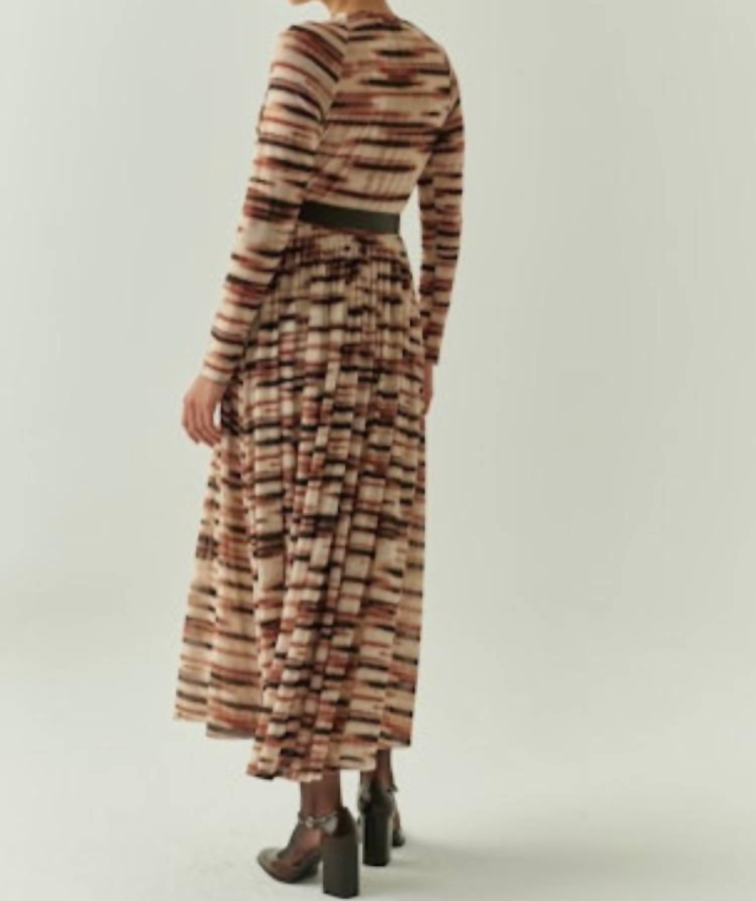 Exquise - Bellamy Printed Long Sleeve V Neck Knit Dress