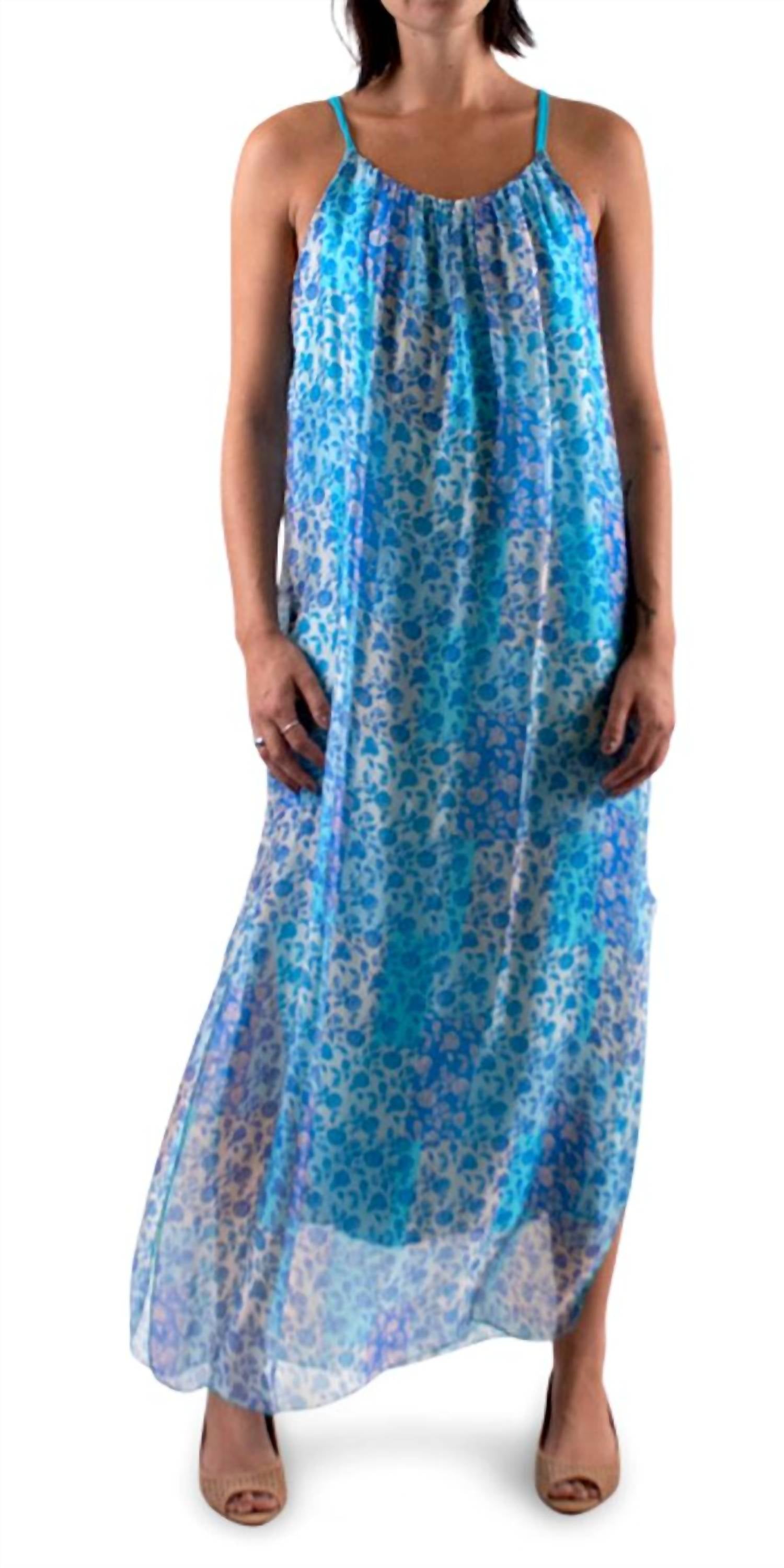 Cute and comfortable, this long sleeve dress has it all. Introducing the Venus Rosebud Maxi Dress by GIGI MODA, a stunning piece perfect for your spring wardrobe. This turquoise dress with spaghetti straps is crafted with an exterior of 100% silk and features a floral roses patchwork print. Made in Italy, it offers a boho chic shift silhouette with side slits and a soft inner lining for added comfort. Closure is a convenient pull on style, and it requires dry cleaning to maintain its elegance.