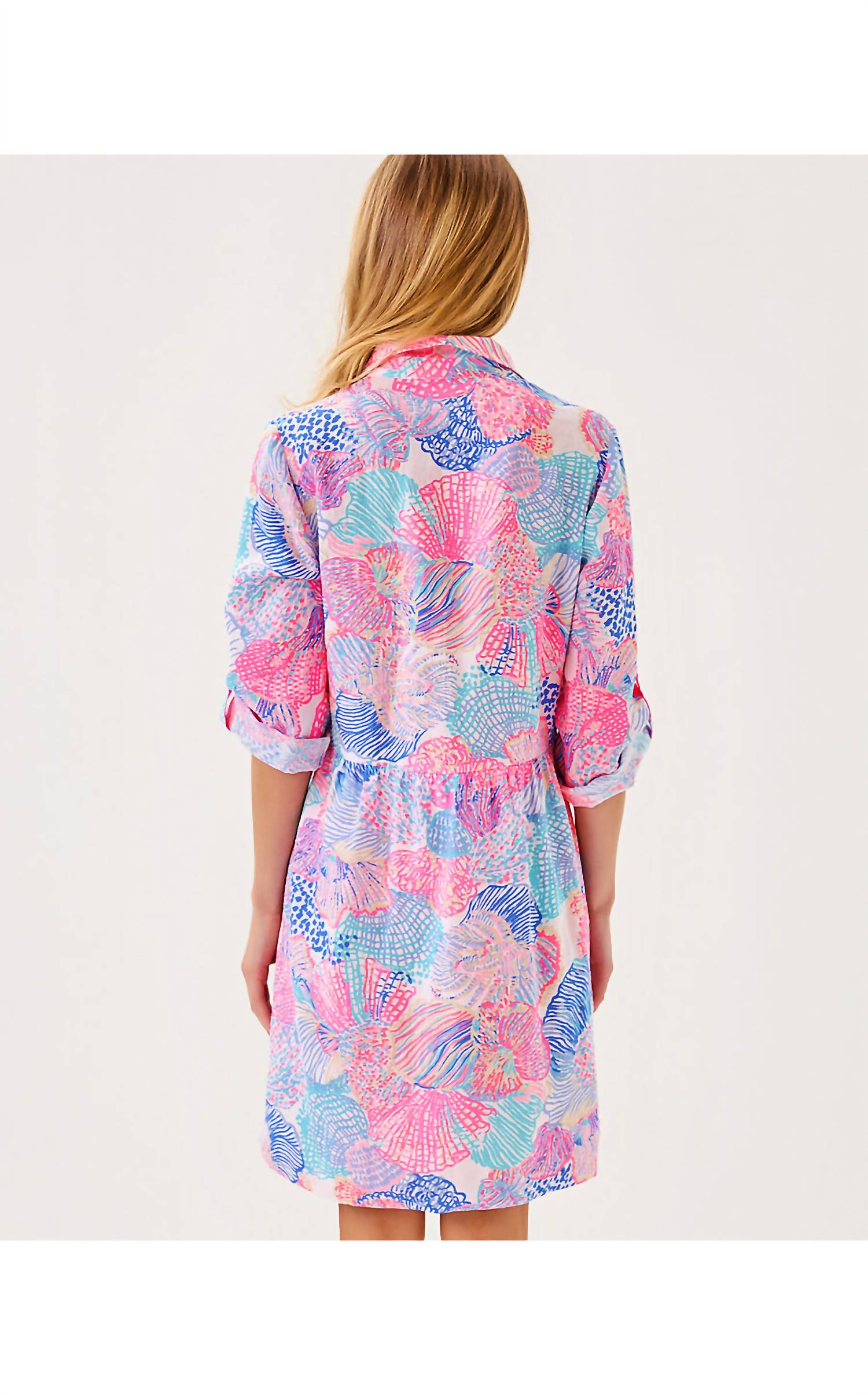 A flattering yet comfortable dress you'll be reaching for season after season. Introducing the Women's Shaela Dress by Lilly Pulitzer, a vibrant addition to your spring wardrobe in the eye-catching Multi Roar Of The Seas colorway. This shirt dress features long sleeves and a stylish collared neckline, embodying a maximalist trend perfect for vacation occasions. Made for women, it offers a patterned design with a secure button closure. Whether you're abroad or at a sunny local spot, this dress brings vibrant style to your adventures.