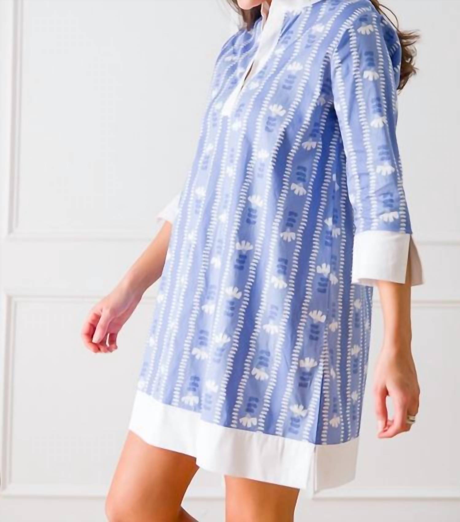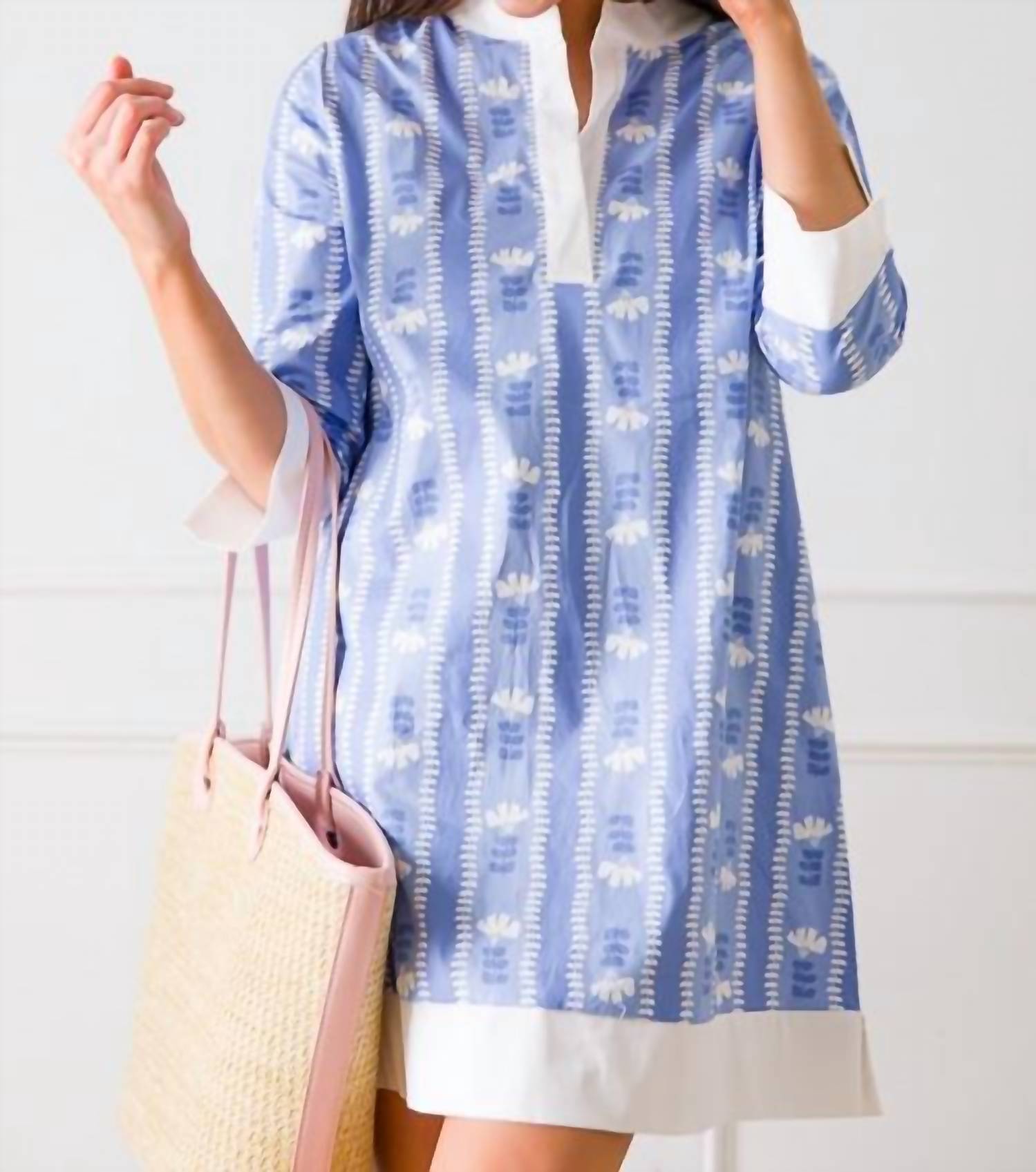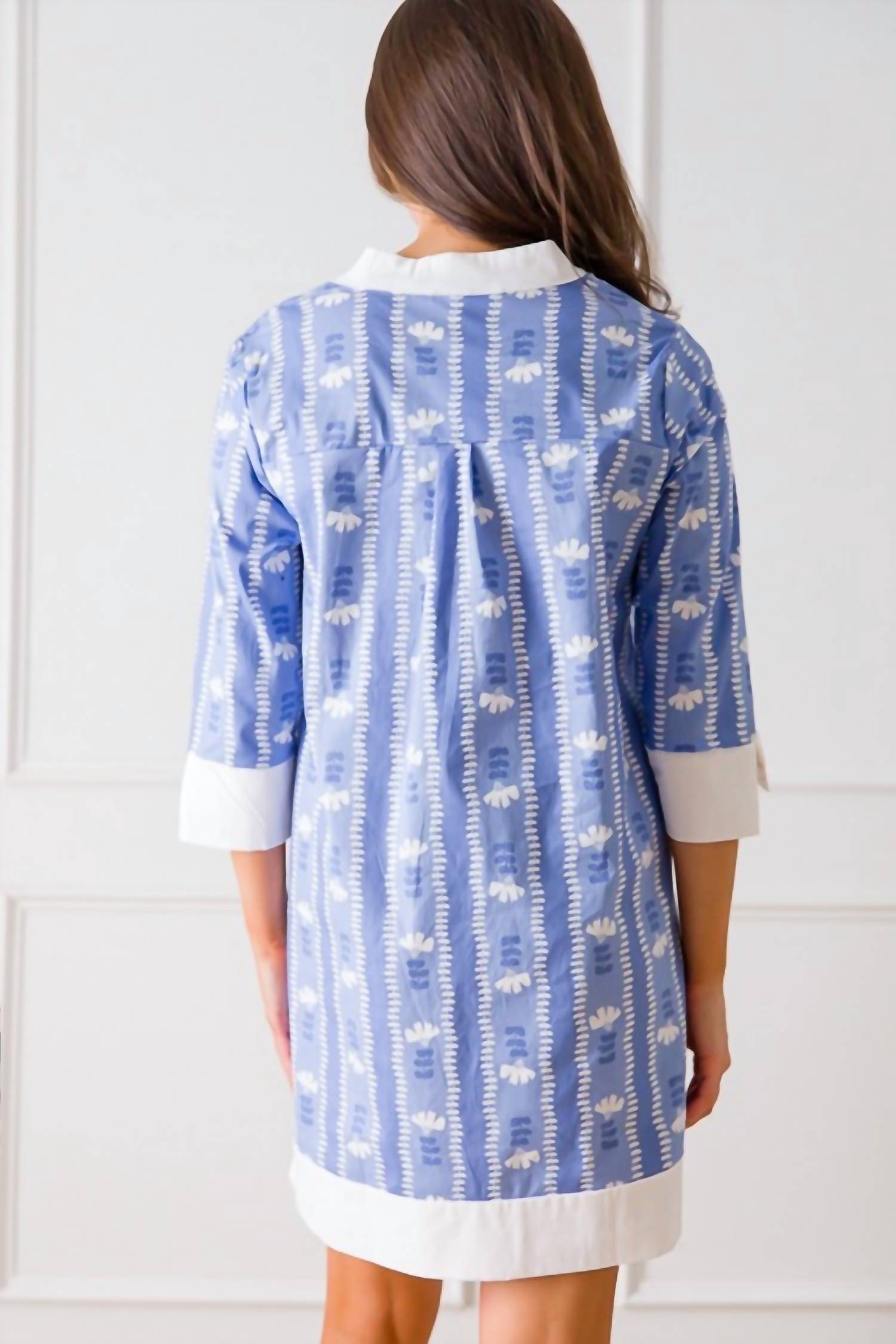 The pefect long sleeve dress for those cooler months. Meet the Camille Stripe Dress by Michelle McDowell, a chic vacation-ready piece in a trendy maximalist design. This dress features three-quarter sleeves with slit cuff detail and a shift silhouette, complete with a stylish notch V-neckline and a gold snap closure. Composed of a cotton blend fabric with 98% cotton and 2% spandex, it offers a comfortable fit with slight stretch. For best results, hand wash and line dry this patterned dress.