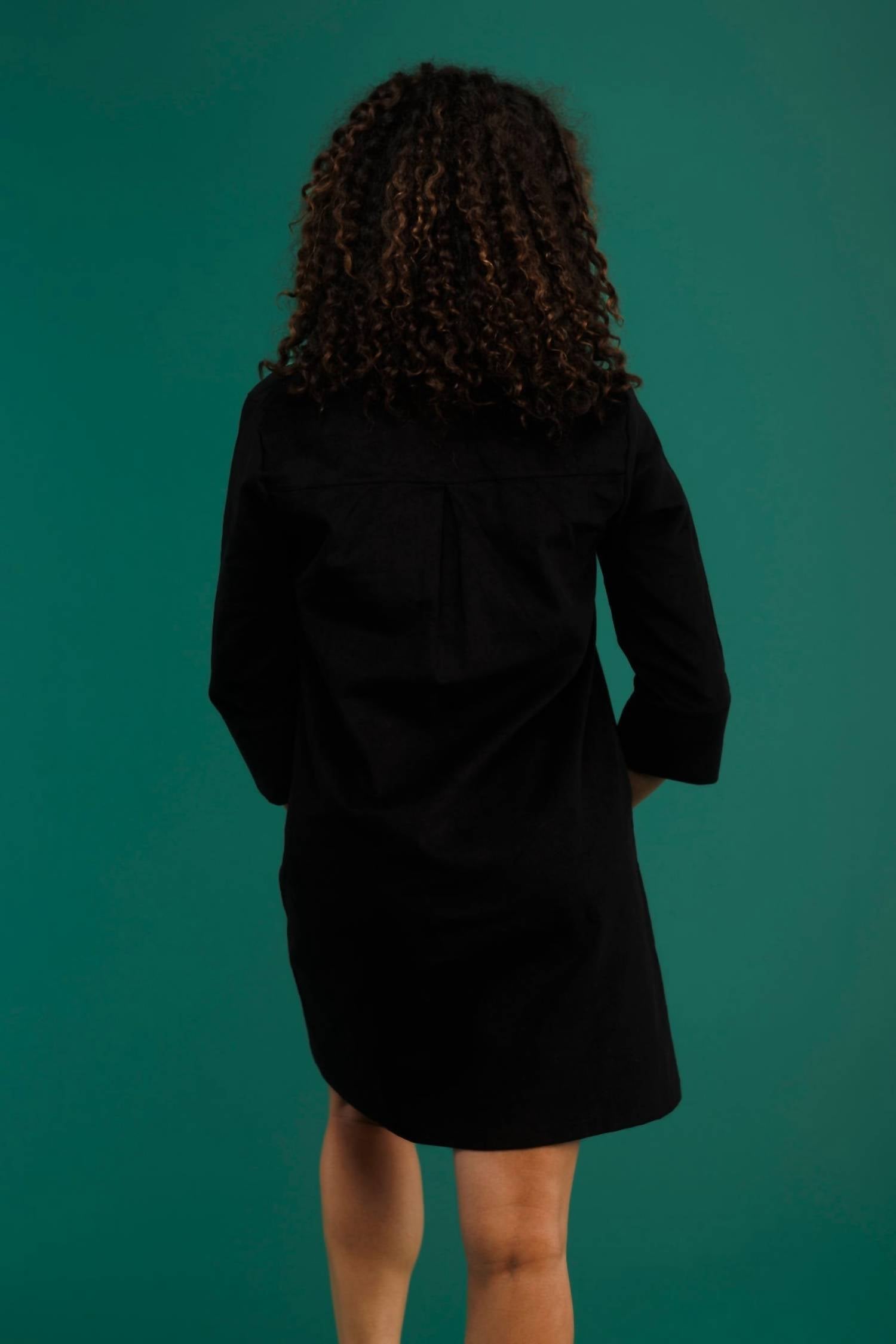 A flattering yet comfortable dress you'll be reaching for season after season. Elevate your wardrobe with the Sophia Dress by SMITH & QUINN, crafted in luxurious black corduroy for a sleek, minimalist look. This classic tunic shift dress features long sleeves, a standing collar, and a button front, complete with practical button cuffs and pockets. Crafted with meticulous attention to detail, it provides a versatile sheath silhouette perfect for evening events. Care: Machine washable. Closure: Button closure.