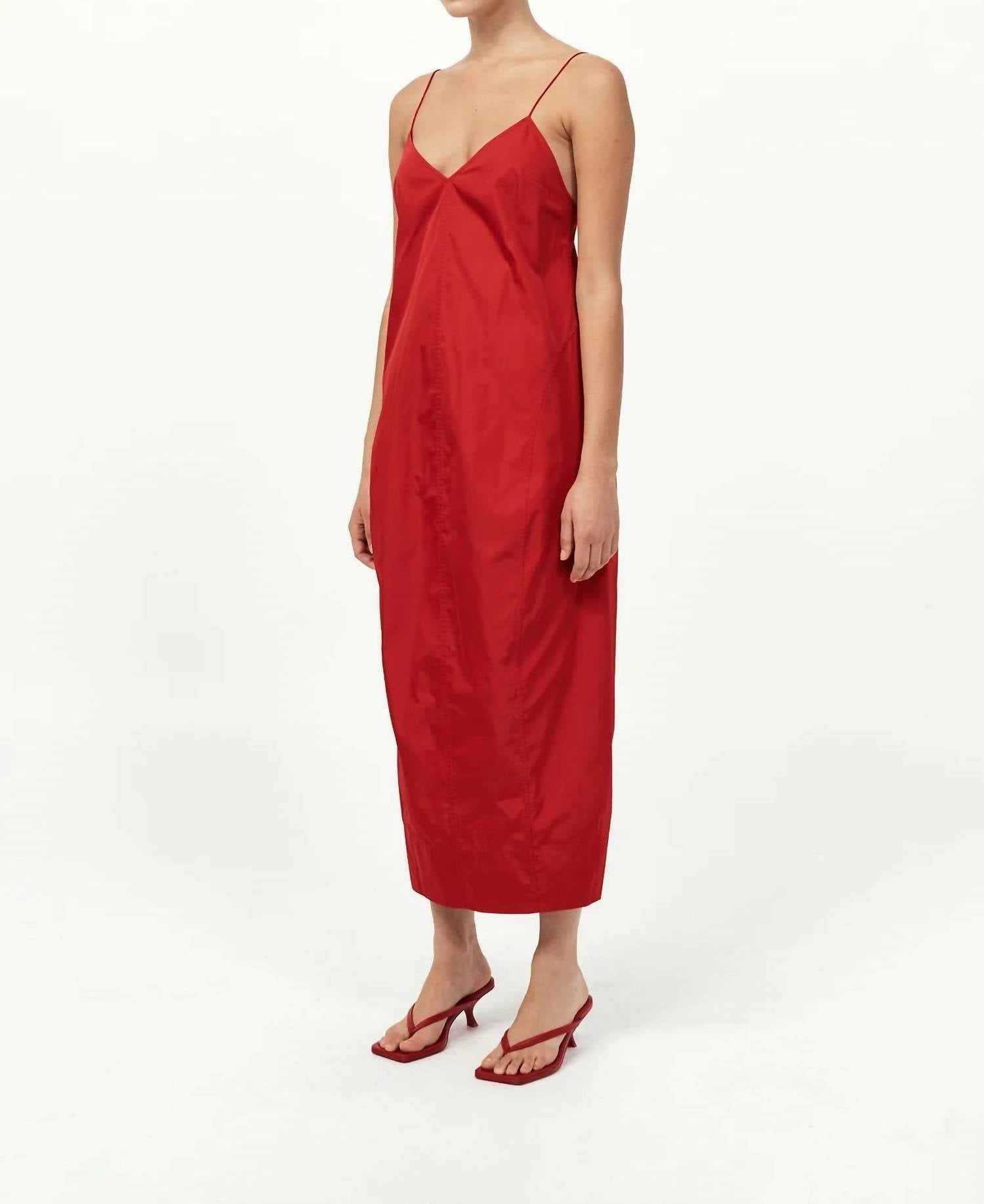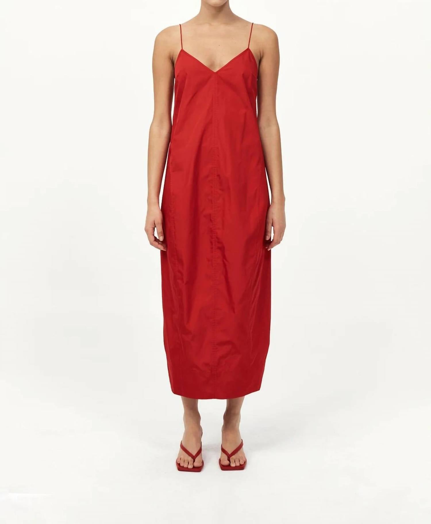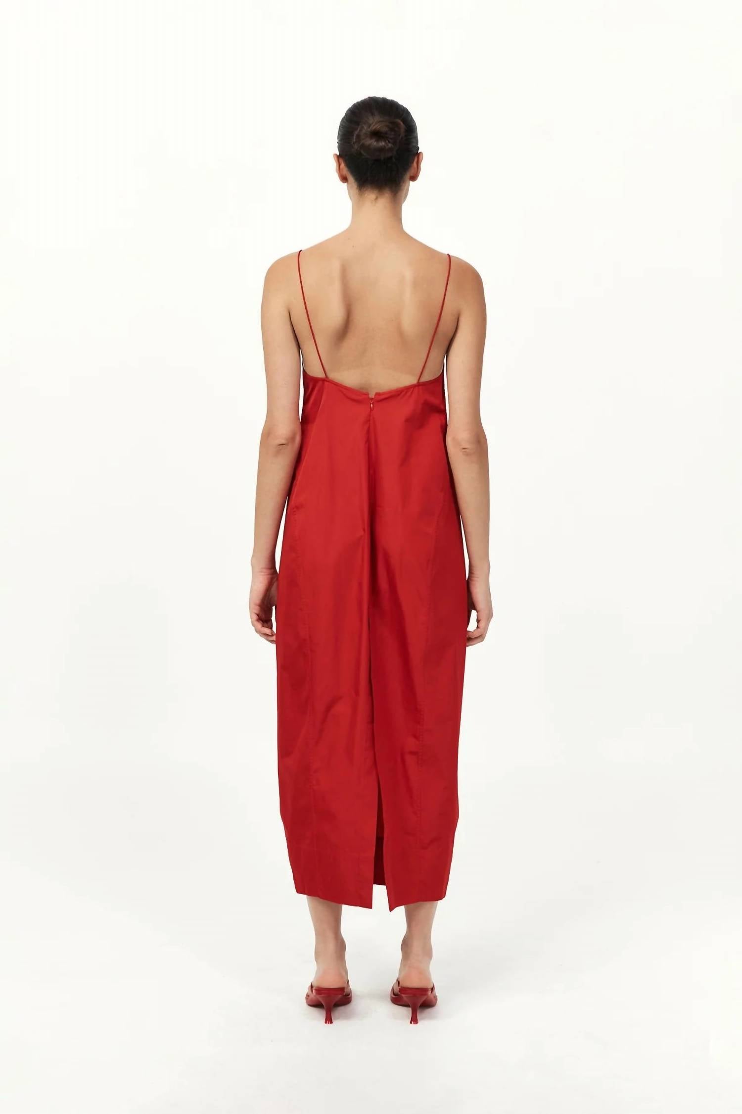 Cute and comfortable, this long sleeve dress has it all. Elevate your evening wardrobe with the Paper Taffeta Cocoon Dress by St. Agni, an elegant choice for a holiday party. This sleeveless dress, rendered in a sophisticated red silk blend, features a graceful V-neckline and a subtle monochrome pattern. Crafted for a sleek silhouette, it includes a zip closure and offers a slip dress silhouette perfect for summer occasions. For care, machine wash and line dry to maintain its refined structure.