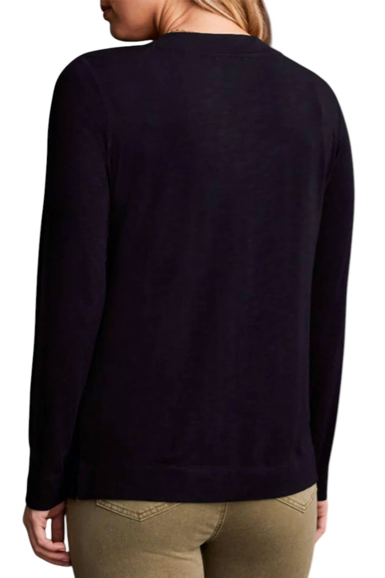 The perfect long sleeve tee that goes with just about anything. Discover effortless elegance with the Long Sleeve V-neck Top With Side Slits by TRIBAL, crafted in a stretchy black slub jersey fabric. This textured piece is composed of 95% Rayon and 5% Spandex, offering a slim silhouette with long sleeves finished with a cuff and a wide bottom hem featuring side slits. Designed for easy wear, it features a pop-over V-neck and a pull-on closure for comfort. Care for your garment with machine wash and line dry instructions.