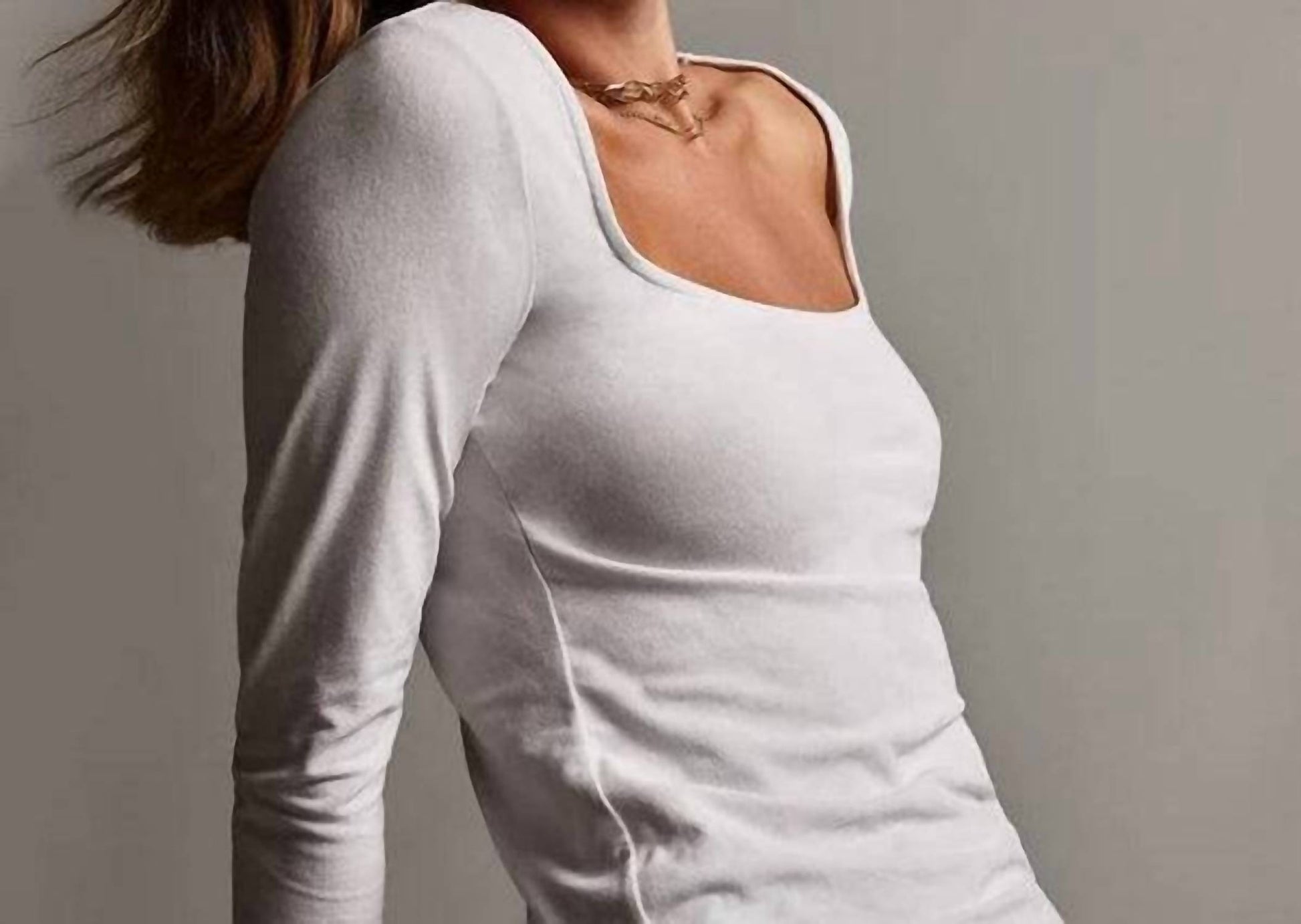 The perfect long sleeve tee that goes with just about anything. Discover the Velvet Long Sleeve Top by JAMES PERSE, a minimalist masterpiece in Talc, perfect for vacation getaways. This women's top features a sophisticated square neckline and pull-on closure for effortless wear. Ideal for the spring season, it embraces the minimalist trend with grace. Care instructions recommend dry clean only for optimal maintenance.