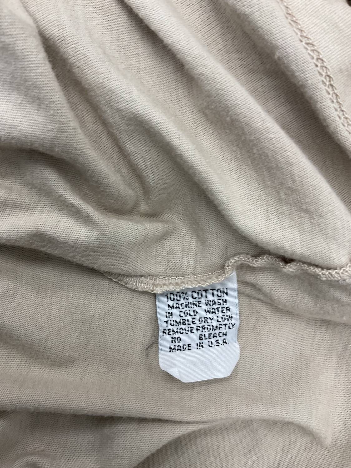 Very soft and comfortable long sleeve shirt. Nice feel to the body. Made in USA. 100% cotton