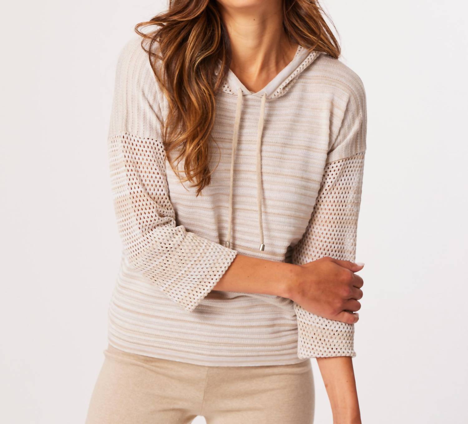 A long sleeve top you can wear with denim, skirts, well... just about anything! Elevate your spring wardrobe with the French Kyss Drawstring Hoodie Top, a stylish choice for preppy occasions. This long sleeve, hooded top features a chic striped design made from a cozy cotton/acrylic blend. It hits at the hip and offers a convenient pull-on closure, perfect for effortless layering. This imported hoodie requires delicate hand washing or dry cleaning to maintain its quality.
