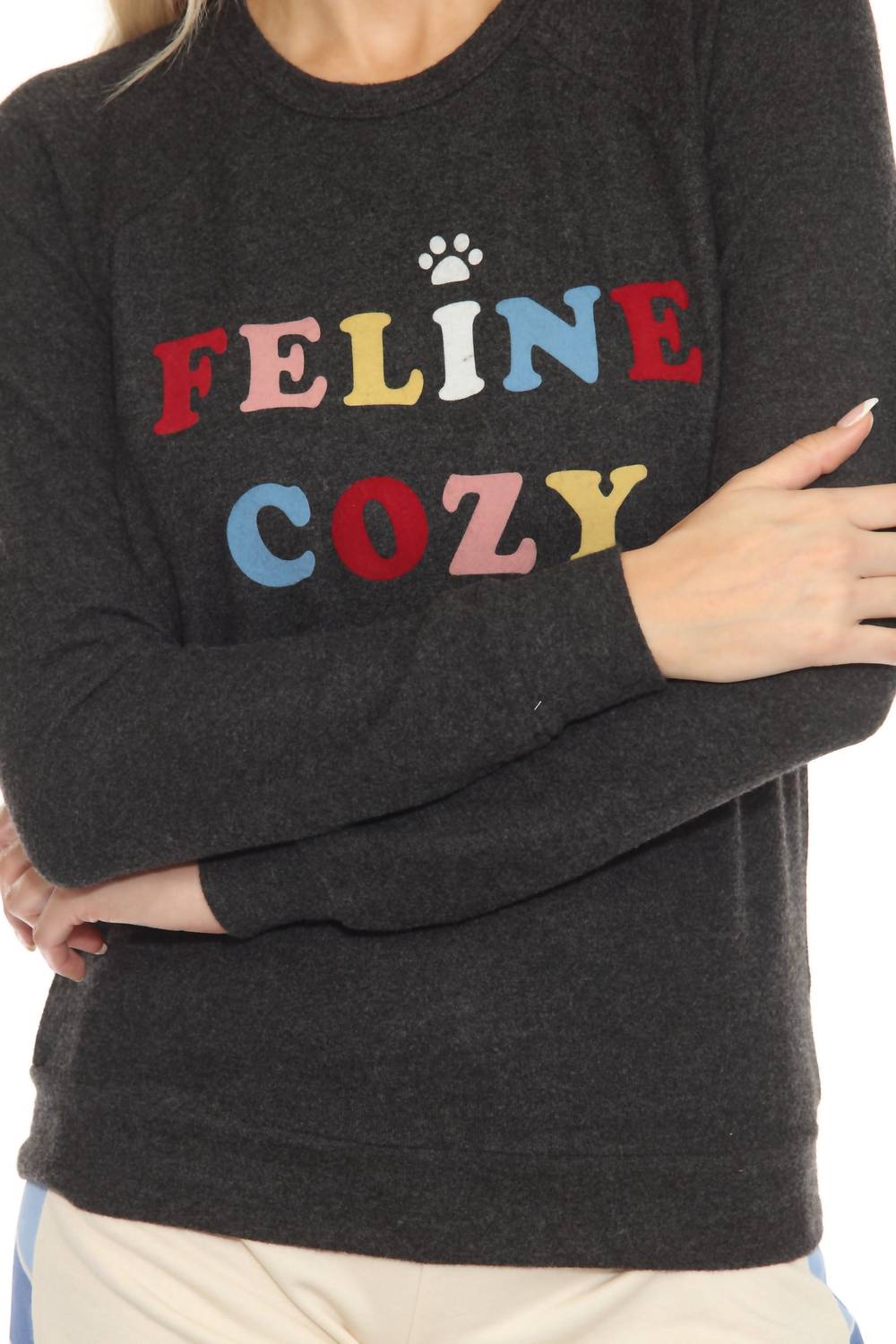 Pj Salvage - Women's Heather Slate Feline Cozy Flannels Lounge Top