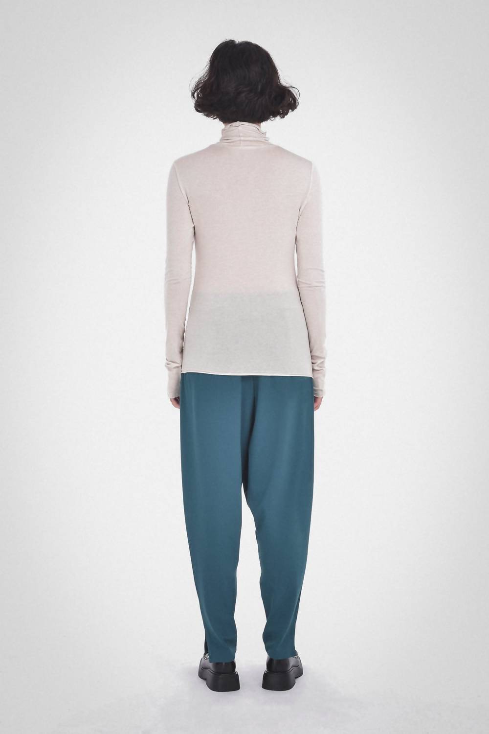 Ultimate versatile long-sleeve tee in a solid black hue. Offers a timeless turtleneck design. Crafted for comfort and adaptability. Pull-on style piece with the flexibility to complement both casual and more refined looks. Hand wash cold, laying flat to dry, and avoiding bleach, tumble drying, and ironing to maintain its quality.