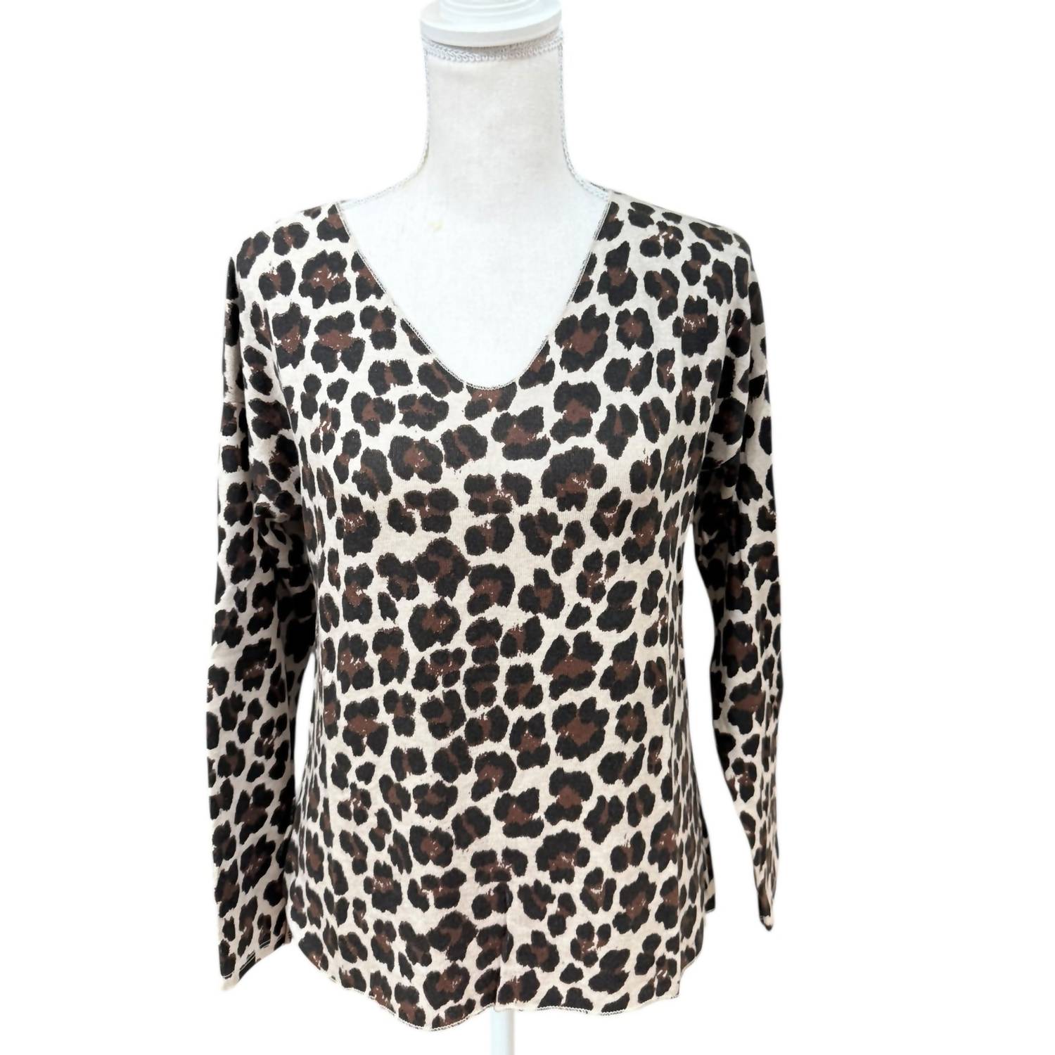 Great fit, cute design, soft fabric. You'll love everything about this long sleeve tee. Introducing the Everyday Leopard V-neck Tee by Made in Italy, a chic addition to your wardrobe in a sophisticated beige animal print. With its long sleeves and a versatile V-neck, this top is crafted from a blend of 80% Viscose, 15% Nylon, and 5% Polyester, ideal for both layering and standalone wear. Featuring a unique slight hi-lo hemline, it fits US Sizes 4 to 12 and is designed in Italy with a pull-on closure. Care is simple with machine wash and line dry instructions, ensuring you stay stylishly comfortable throughout the season.