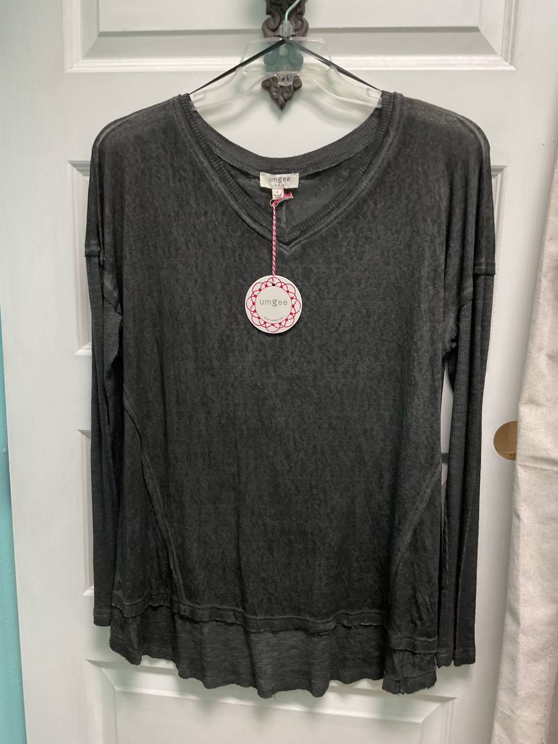 Umgee - Women Mineral Washed Ribbed Top with Raw Edge Scoop Hem