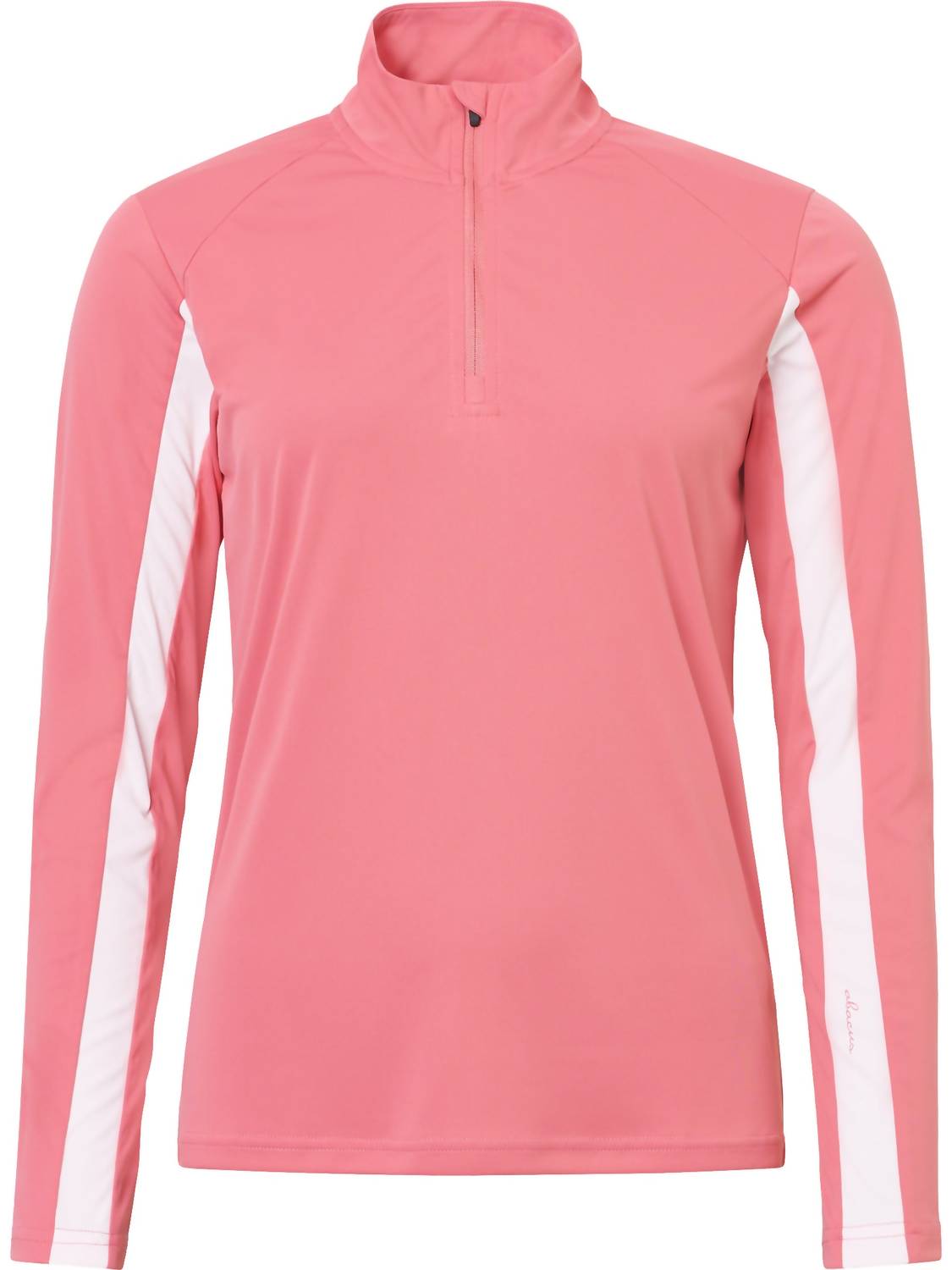 The perfect long sleeve tee that goes with just about anything. Introducing the Aloha UV Longsleeve Pullover by Abacus Sportswear US, a perfect blend of style and protection. This women's long sleeve turtleneck in a striking Lipstick color ensures UPF 50 level sun defense, utilizing high-density yarn in its breathable fleece fabric. Featuring a practical zip closure and a mockneck design, it’s ideal for game day or any sunny outing. Originating from Abacus Sportswear US, this pullover offers comfort and ease with machine wash and tumble dry care instructions.