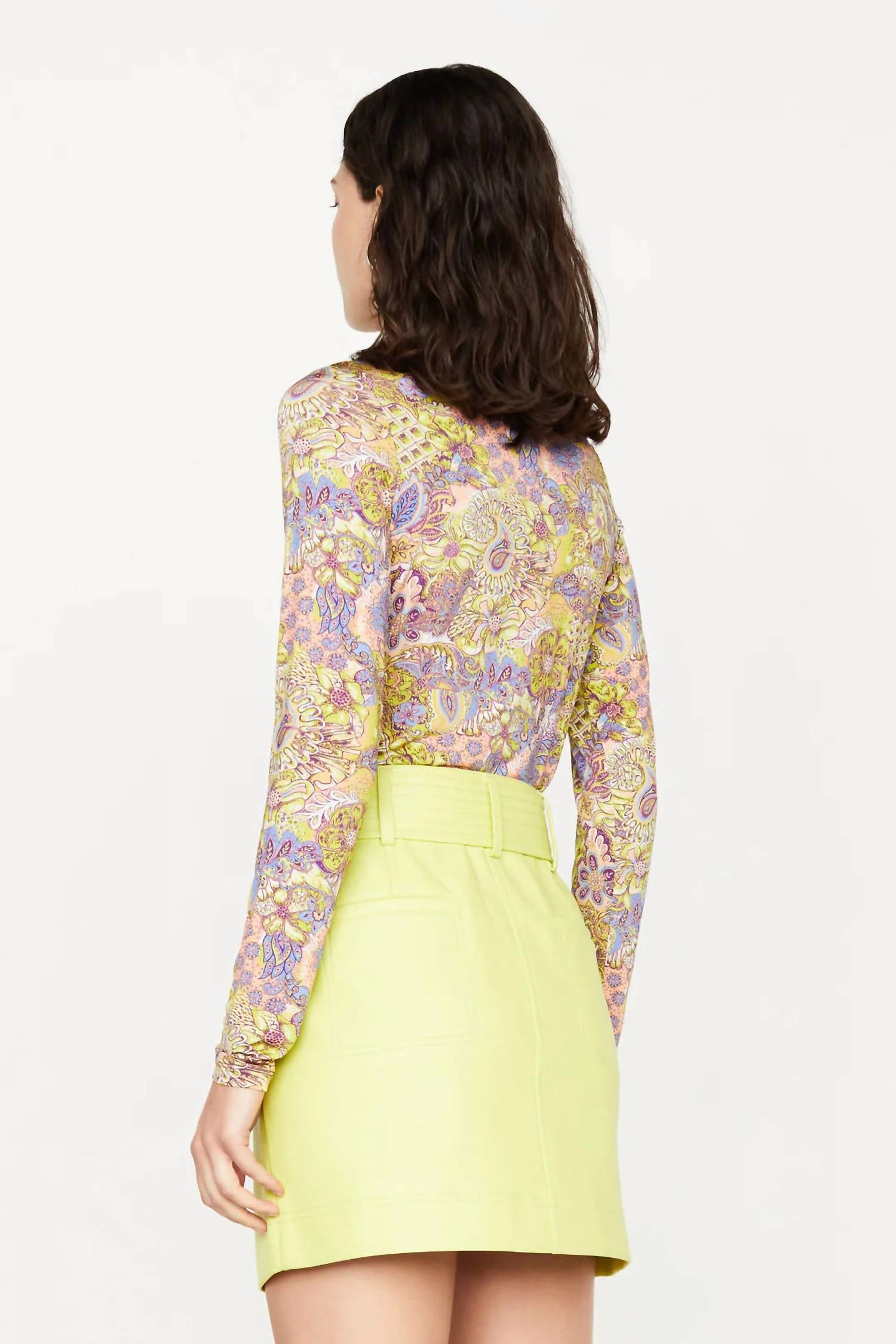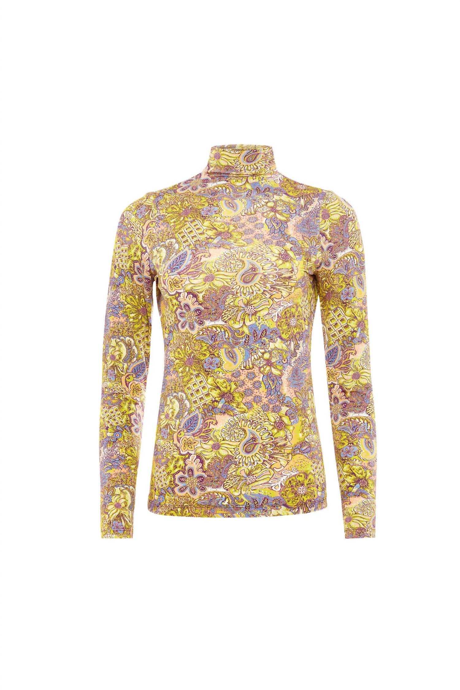 A long sleeve top you can wear with denim, skirts, well... just about anything! Long sleeves and a chic turtle neckline. Crafted from a dreamy blend of 92% Rayon and 8% Elastane. Jersey knit top offers both comfort and style in its vibrant 70s-inspired floral print. Slip it on for effortless elegance, thanks to its pull-on closure. Dry clean only.