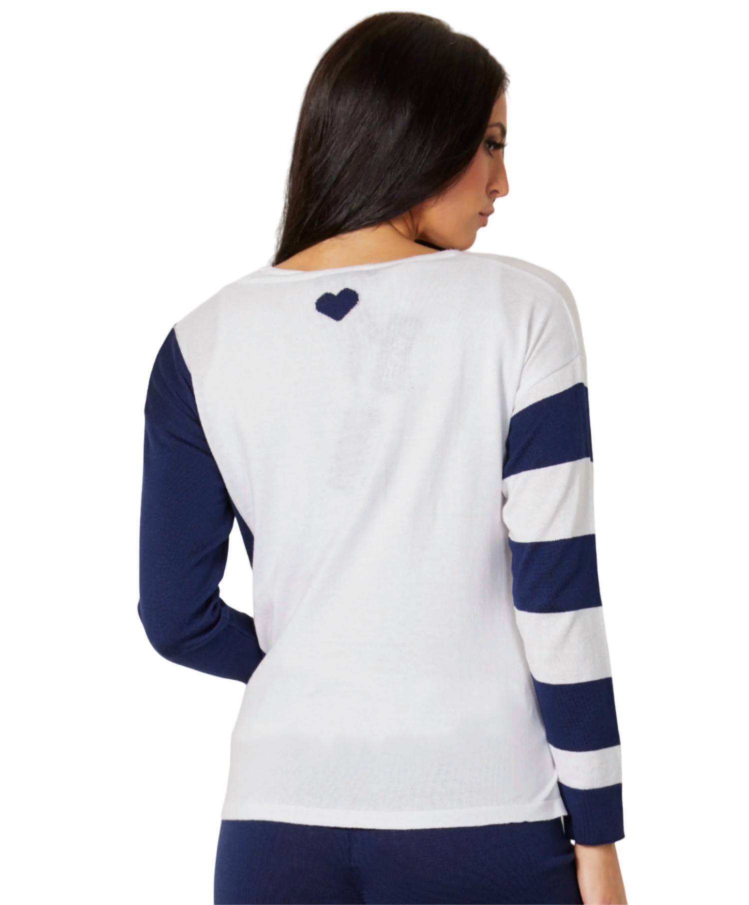 Cotton/Acrylic Blend. ANGEL top. V-Neck. Stripe and hearts Detail. Long Sleeve. Hits at waist. Delicate hand wash or dry clean. Imported.