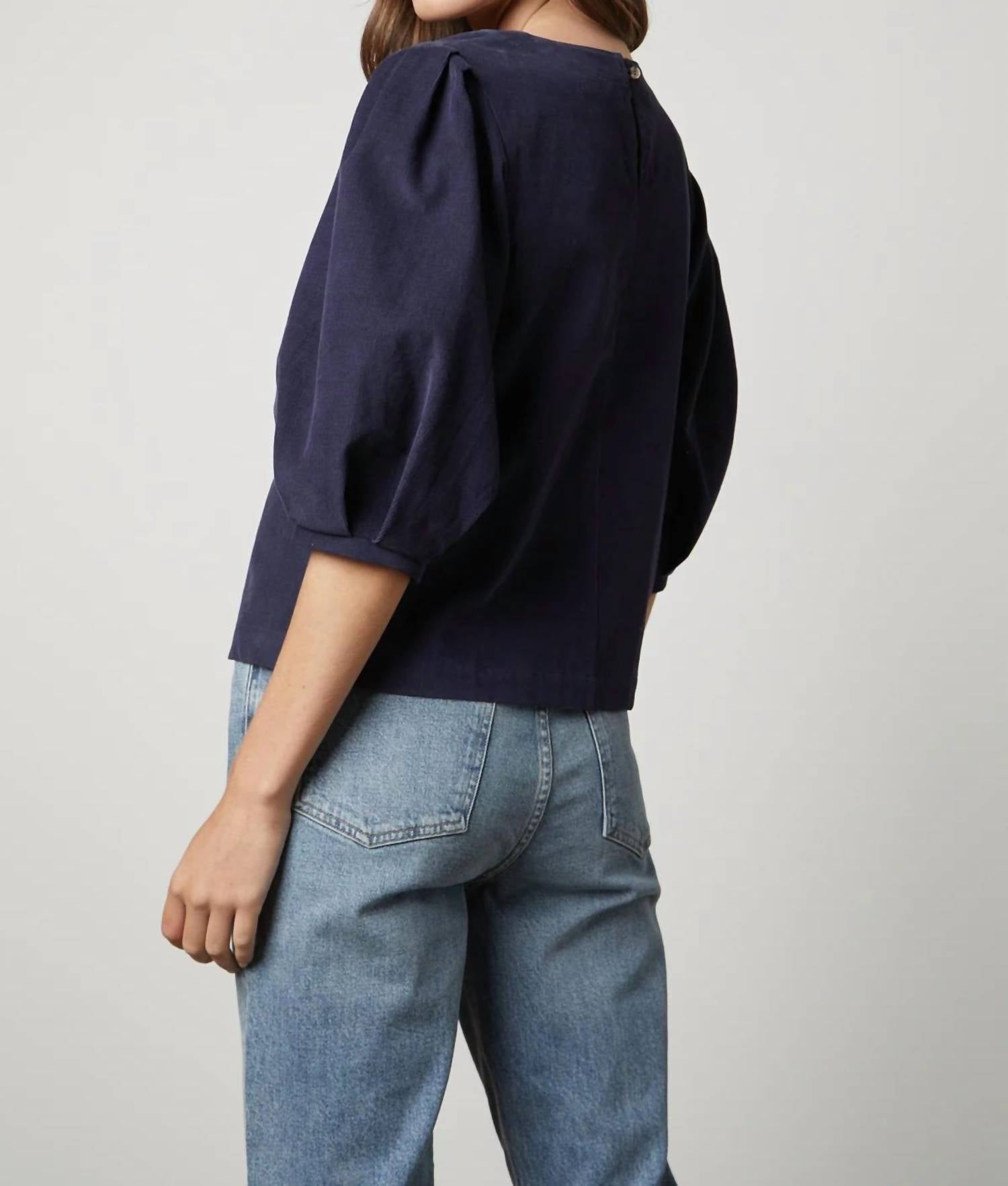 Great fit, cute design, soft fabric. You'll love everything about this long sleeve tee. The Tarah Corduroy Top by Velvet by Graham & Spencer is a timeless addition to your wardrobe in a rich Night shade. Crafted from soft cotton corduroy, it features long pleated puff sleeves and a flattering crew neckline. This solid pattern top is designed with banded cuffs and a hemline for a polished look. Boasting a pull-on closure, it is easy to wear and maintain, with care instructions to machine wash and lay flat to dry.