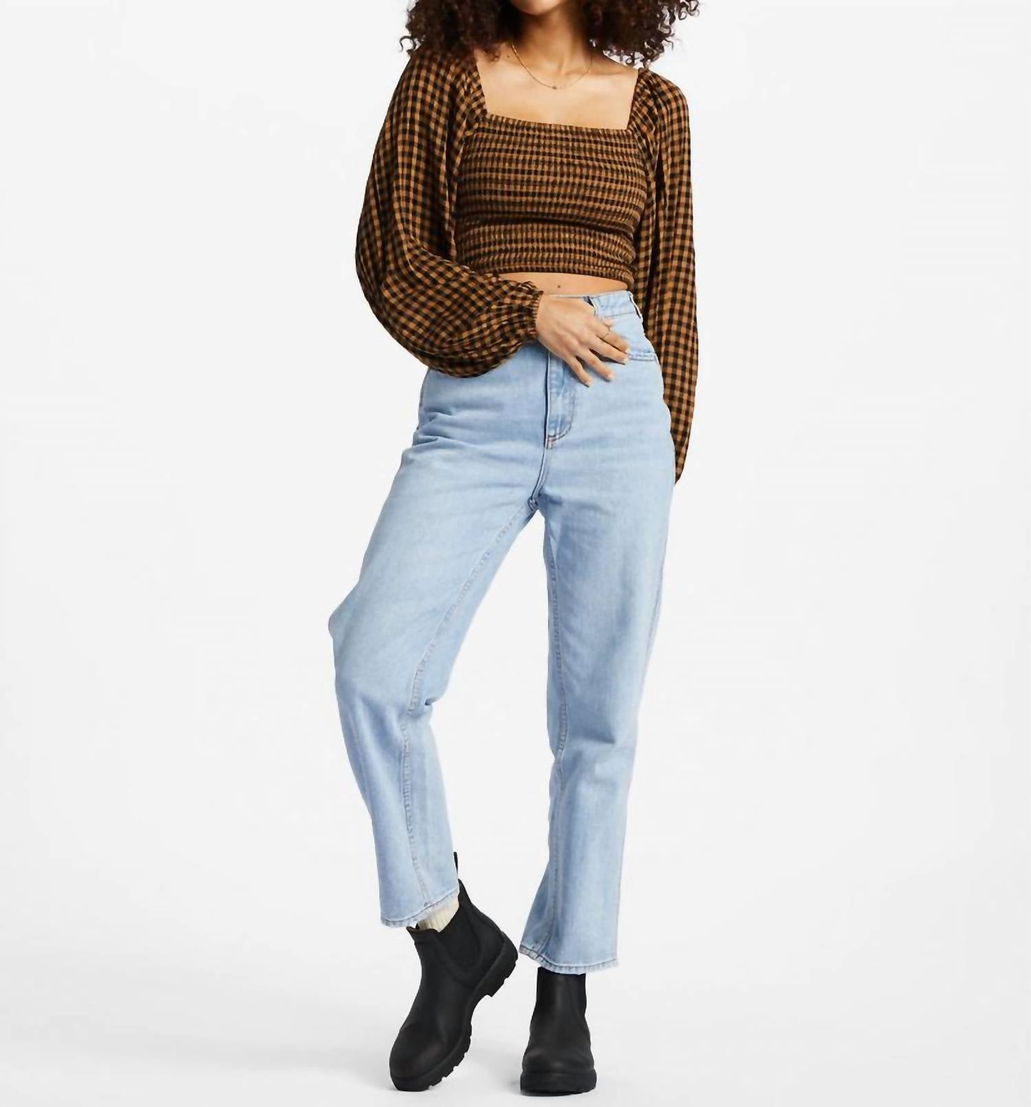 A long sleeve top you can wear with denim, skirts, well... just about anything! Introducing the Paradise Days Top by Billabong in a captivating Cosmic Khaki plaid and check pattern. This women's long sleeve tee is crafted from 100% viscose featuring a straight neck and smocked bodice for a figure-hugging fit. It embraces a pull-on style closure and is true to size.