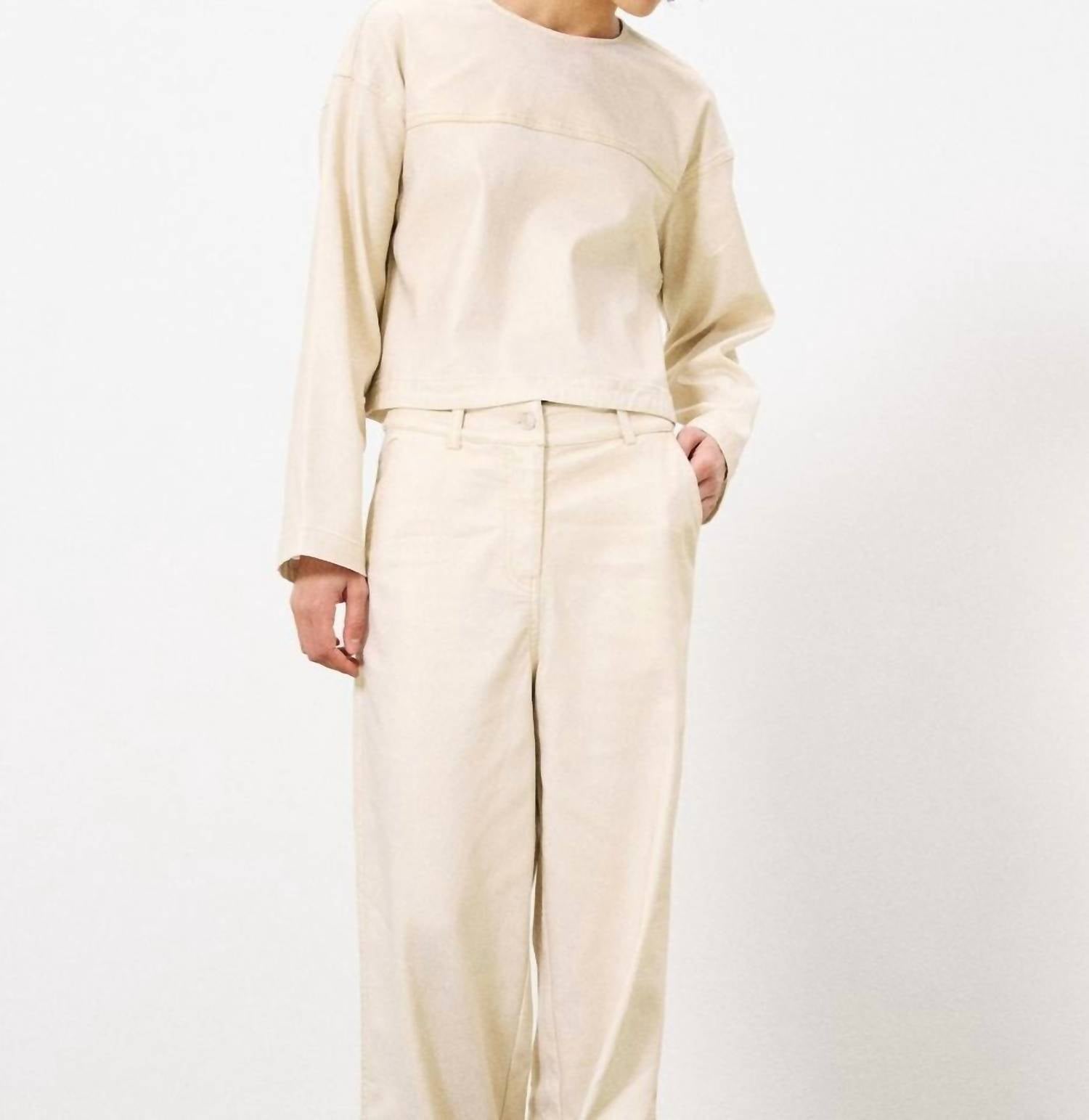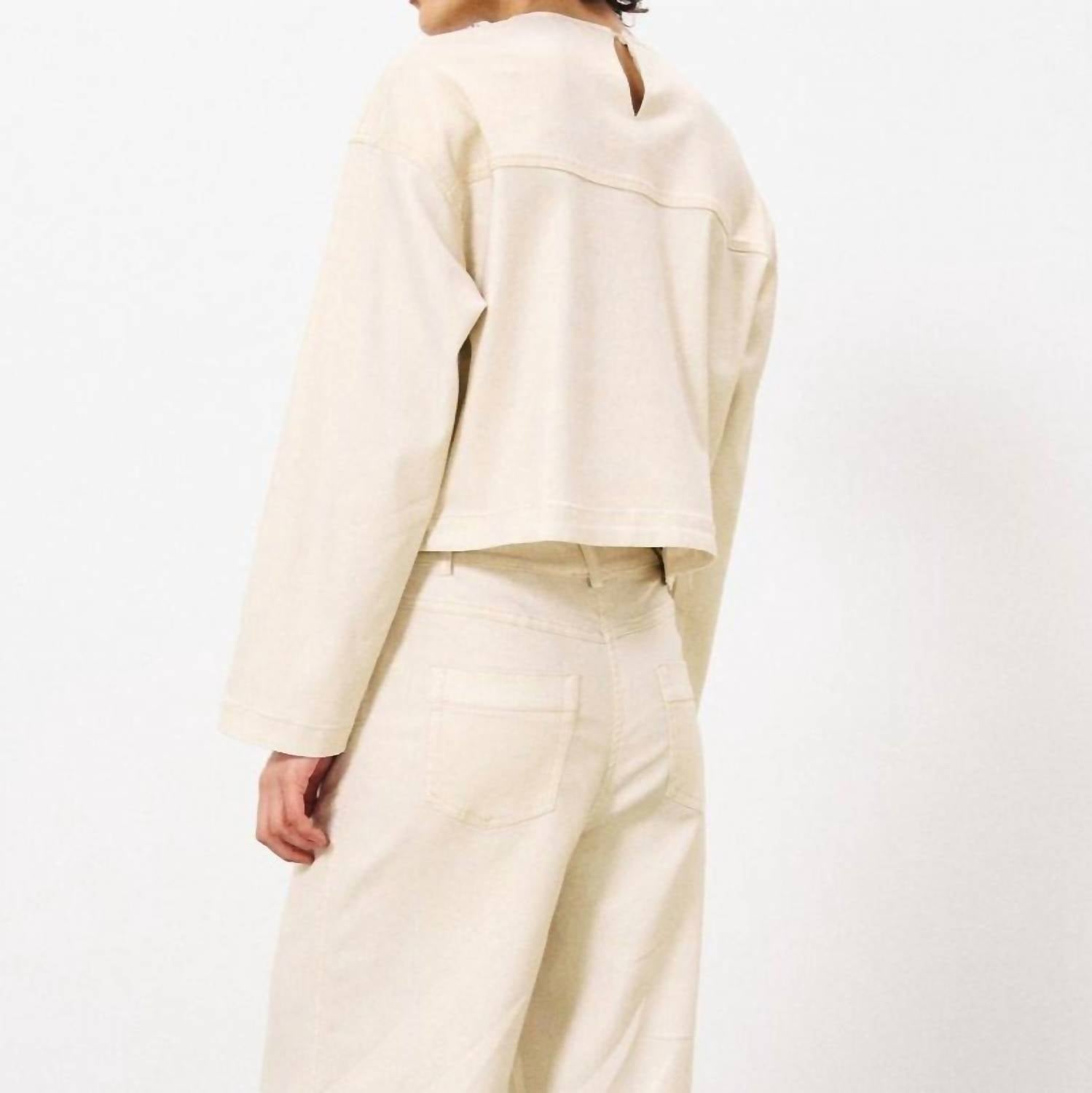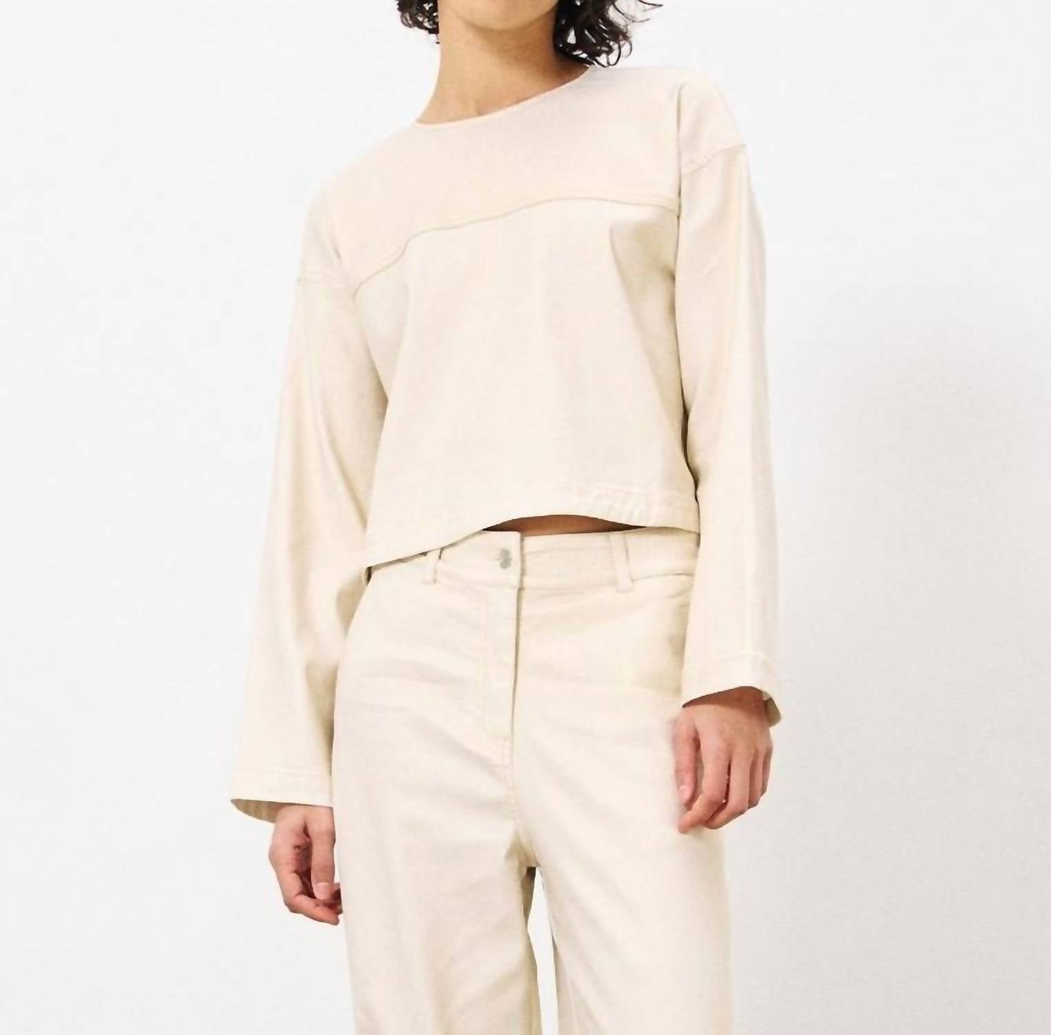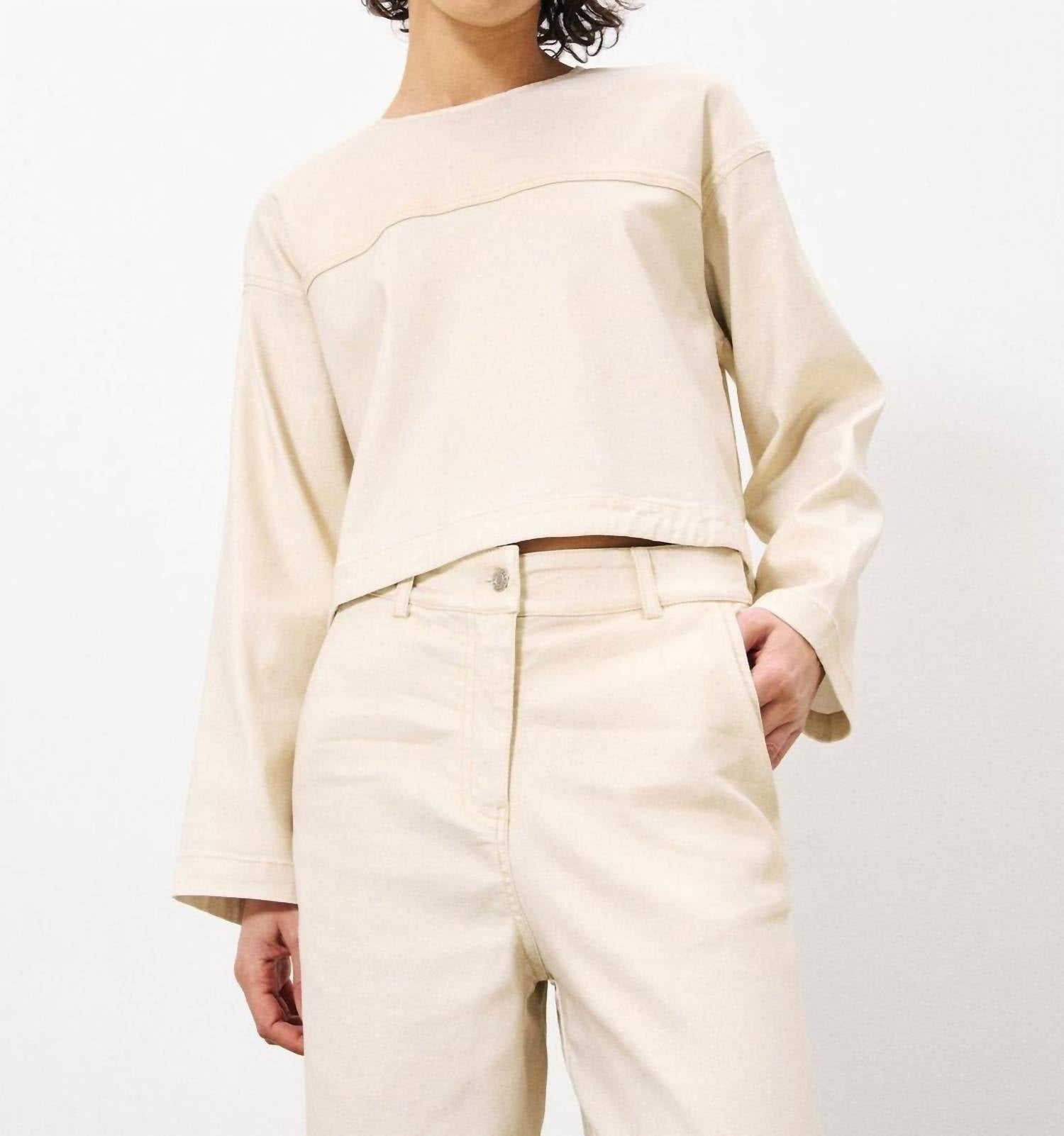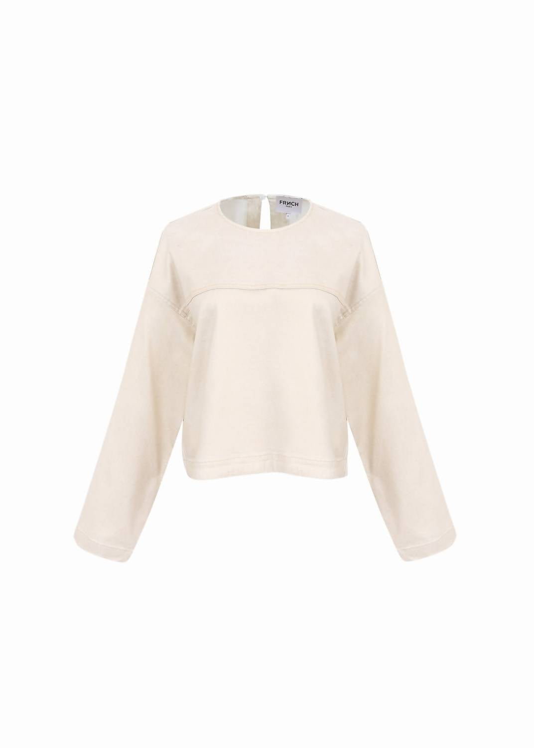 Elevate your wardrobe with the Anatolia Top by FRNCH, a timeless addition in a sophisticated champagne hue. This long sleeve tee exudes effortless elegance and versatility, perfect for any occasion. Fit is true to size. Round neck top with open back. Length: cropped. 65% Cotton - 30% Polyamide - 5% Elastane. Care: Dry Clean.