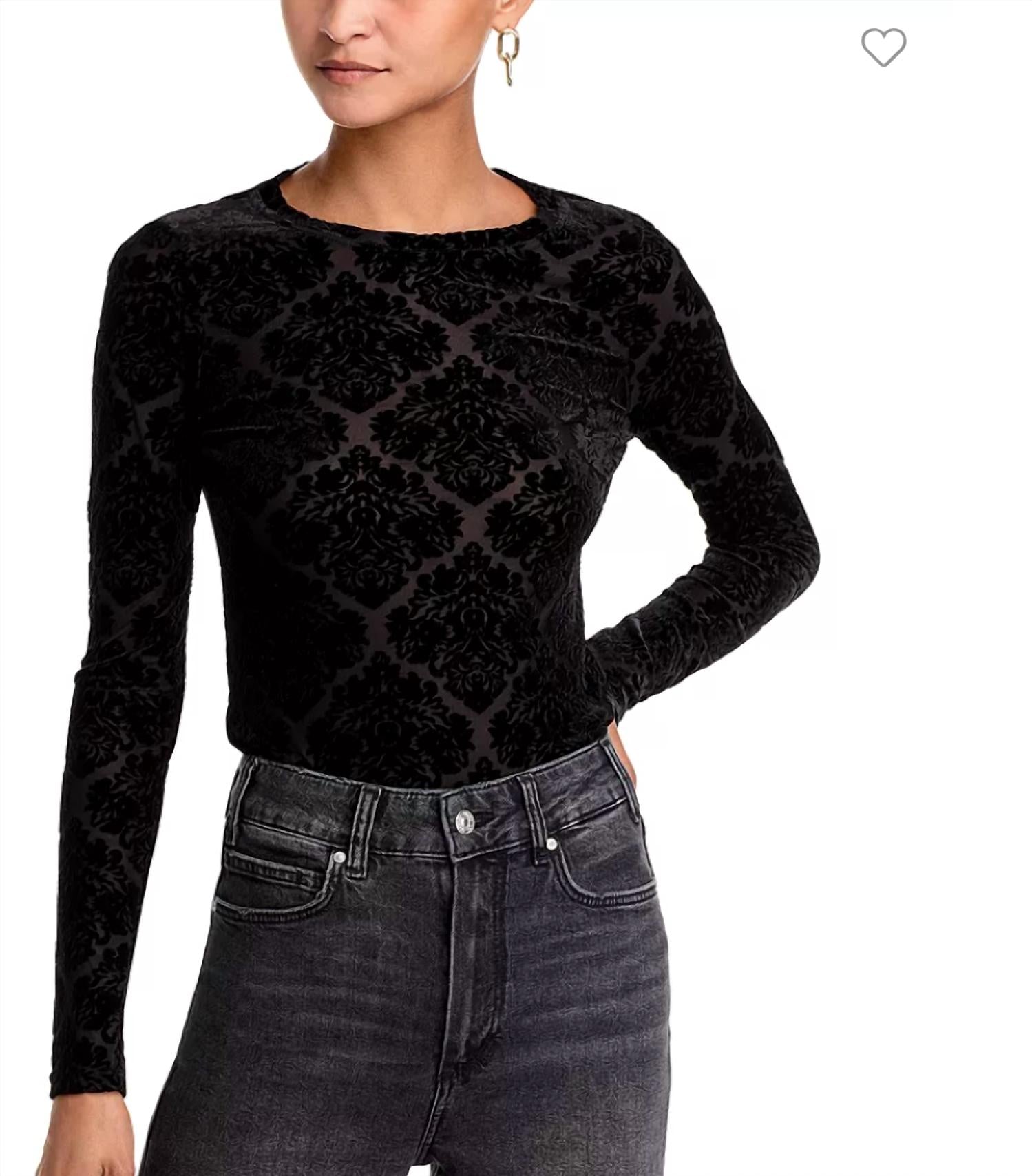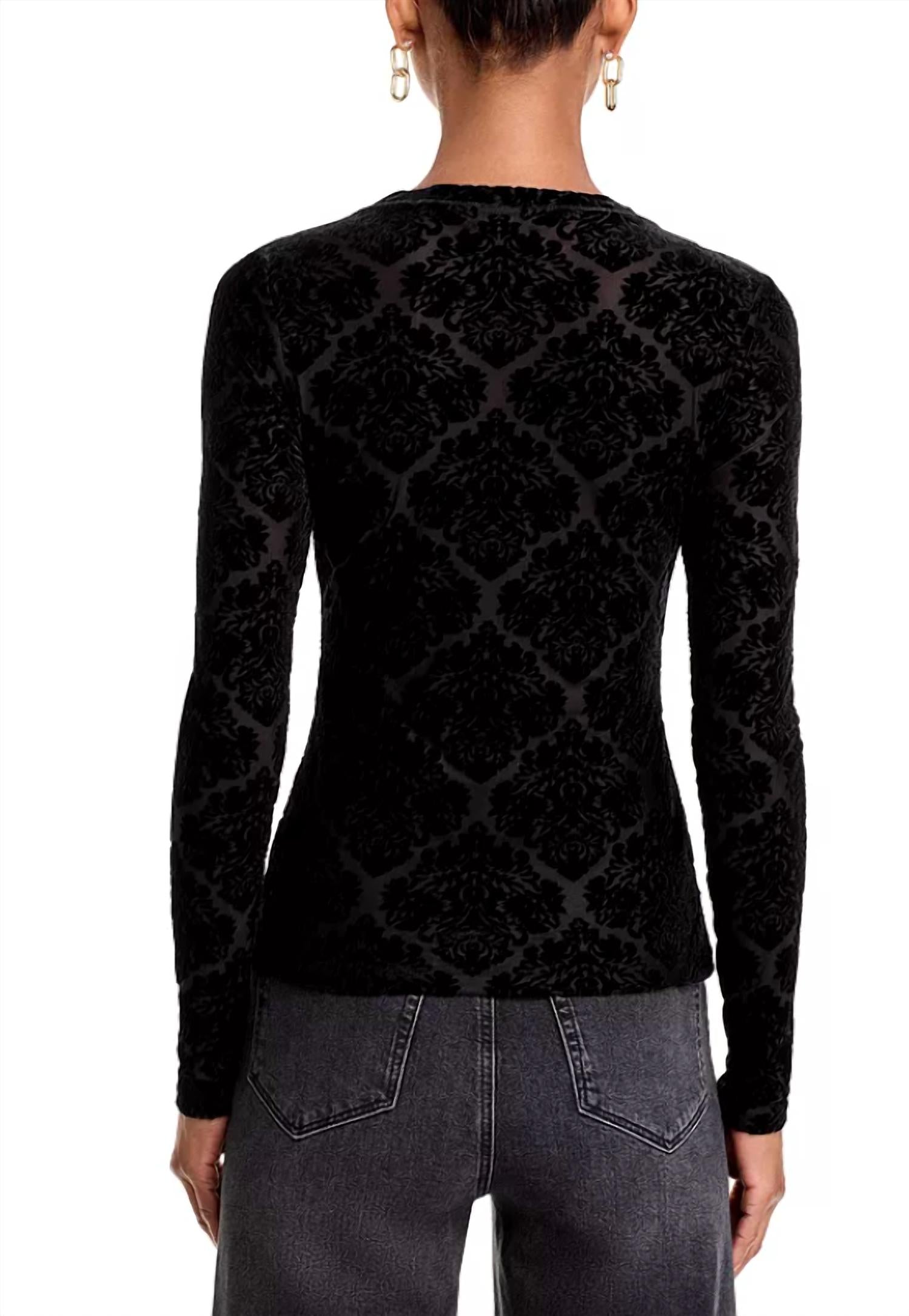 A long sleeve top you can wear with denim, skirts, well... just about anything! Allover velvet burnout texture long sleeve crew neck