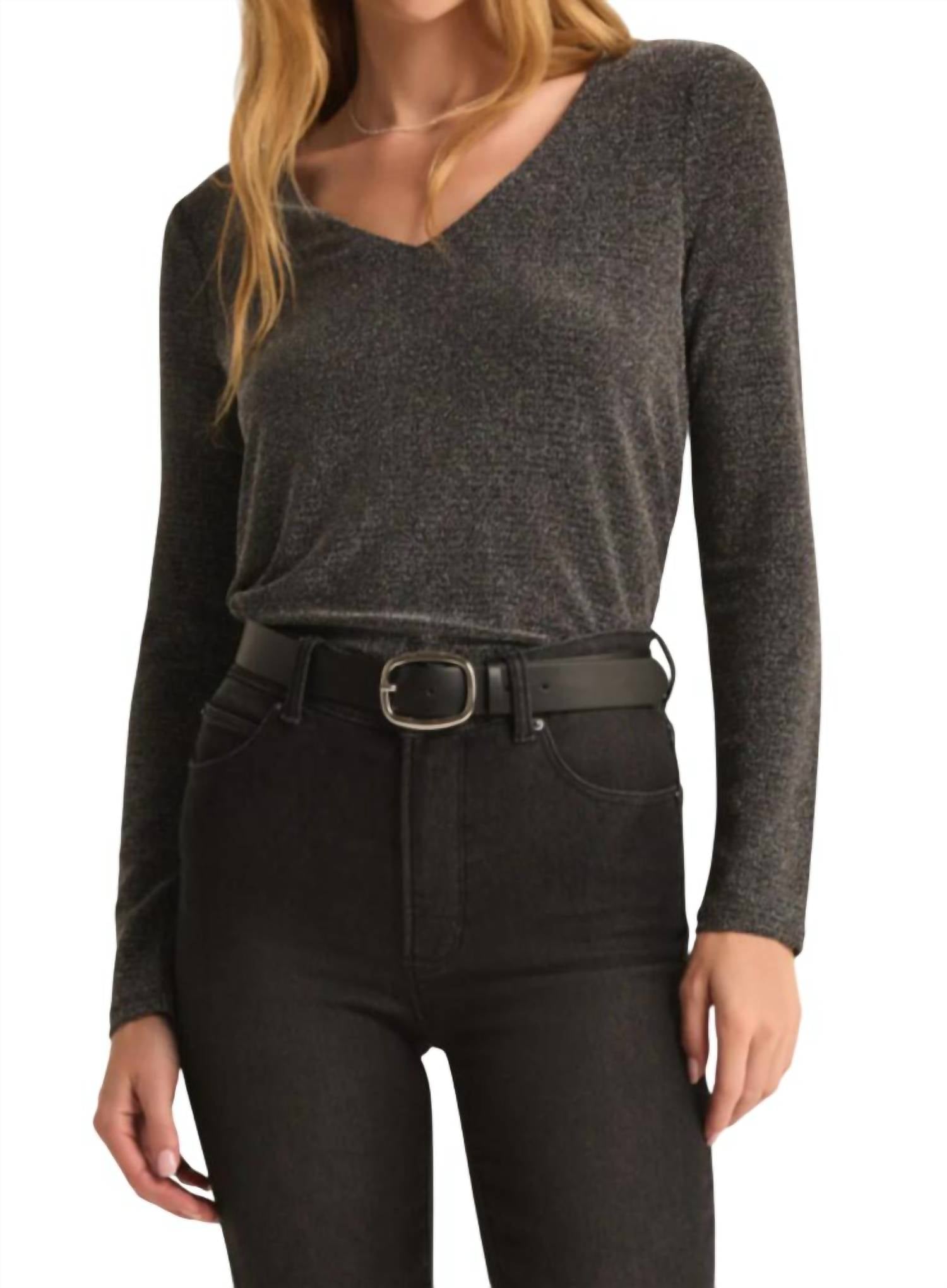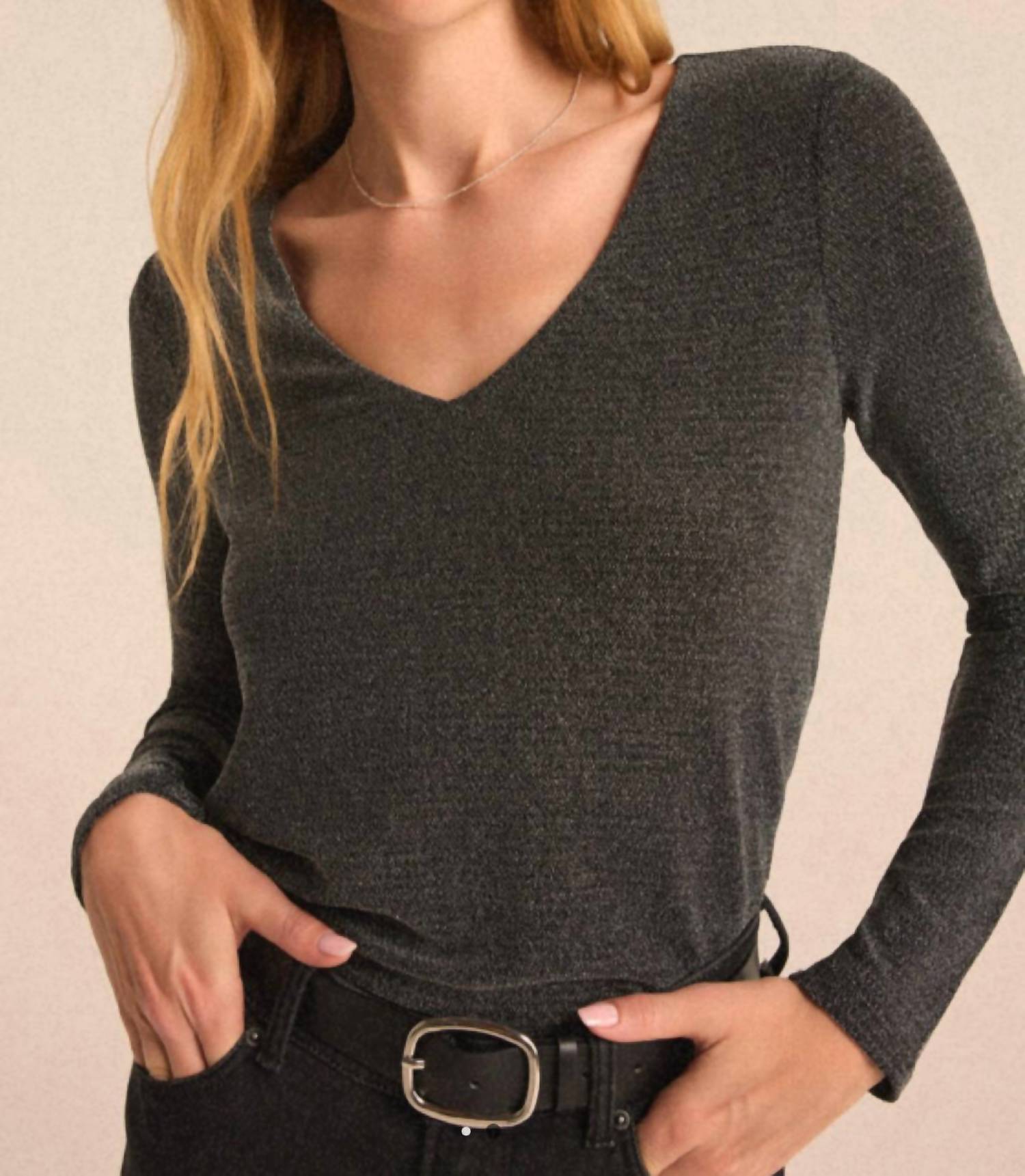 Elevate your wardrobe with the Sammie Sparkle Top by Z Supply, featuring a glistening Stardust hue. This long sleeve top is crafted from a blend of 70% Nylon, 25% Lurex, and 5% Elastane for midweight comfort. Enjoy the ease of a pull-on closure and a flattering V-neckline, perfect for adding a touch of shimmer to any ensemble. Ideal for those seeking a solid pattern and a stylish yet practical piece for their collection.