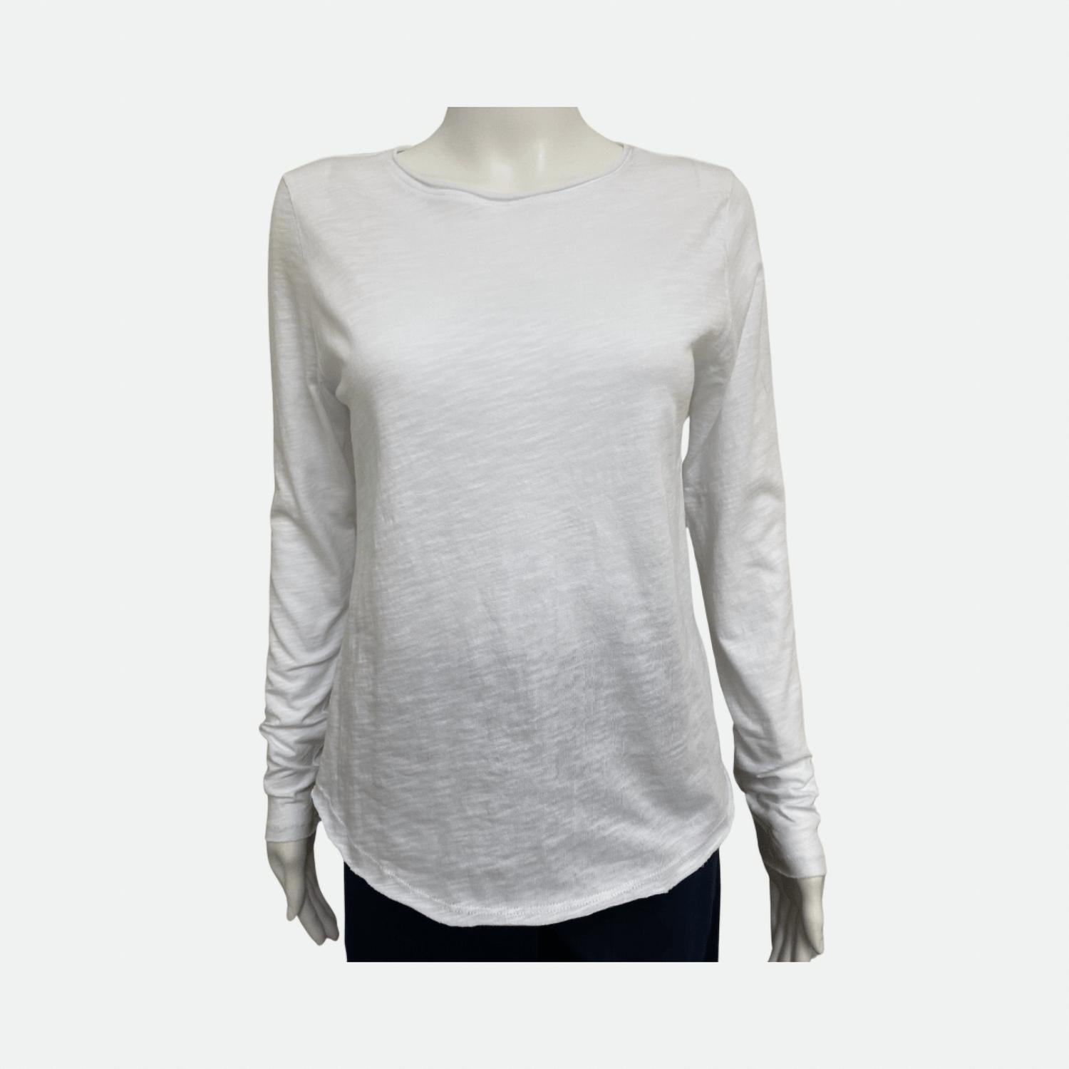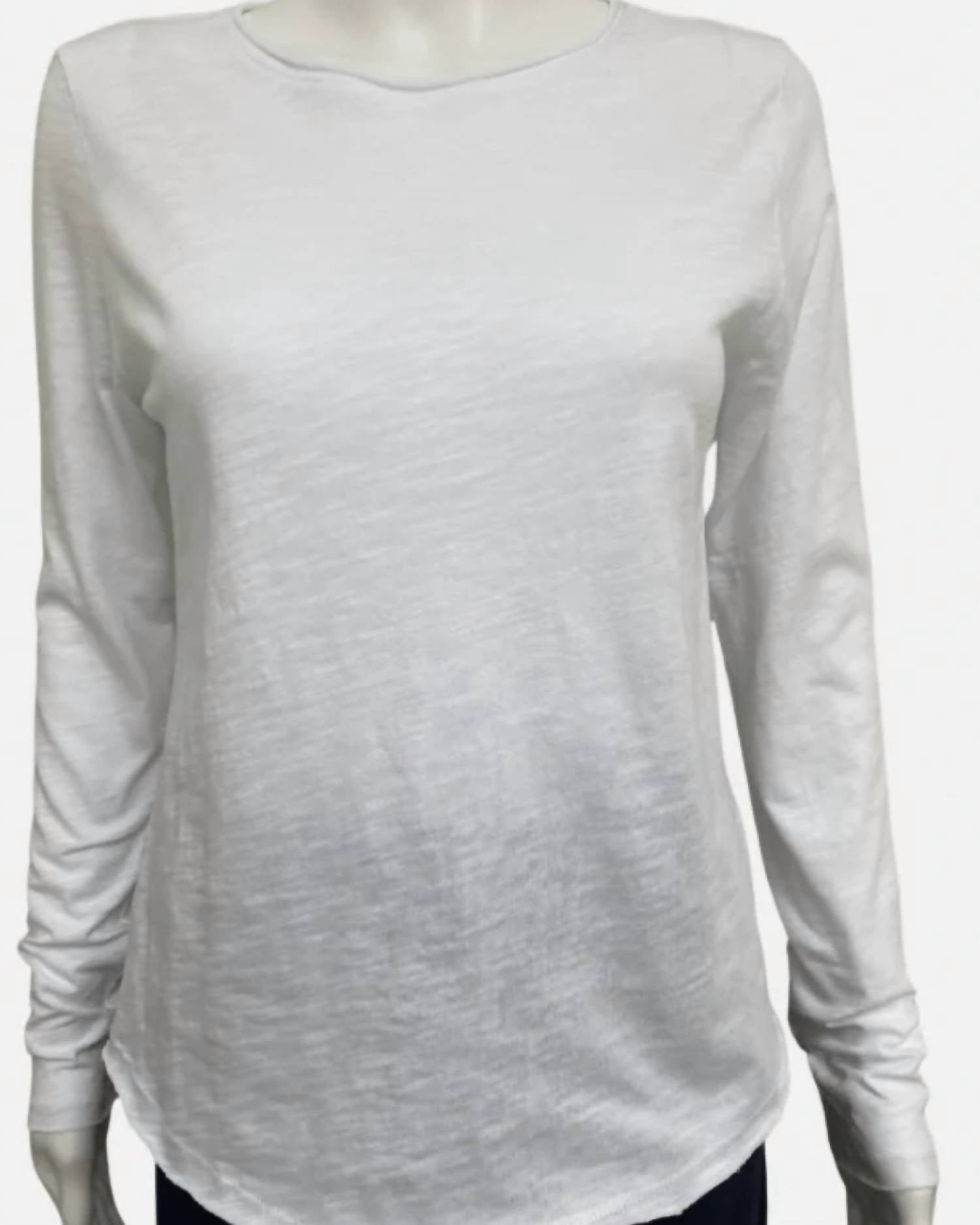 The perfect long sleeve tee that goes with just about anything. Discover the Carter Crew Tee by Elliott Lauren, an essential piece in a crisp white color designed for versatile, everyday wear. Crafted from 100% cotton and made in Peru, this long sleeve tee features an unfinished hem on the neckline, cuffs, and bottom, adding a touch of uniqueness. With its lightweight fabric and classic slim fit, it's perfect as a foundation for any outfit.