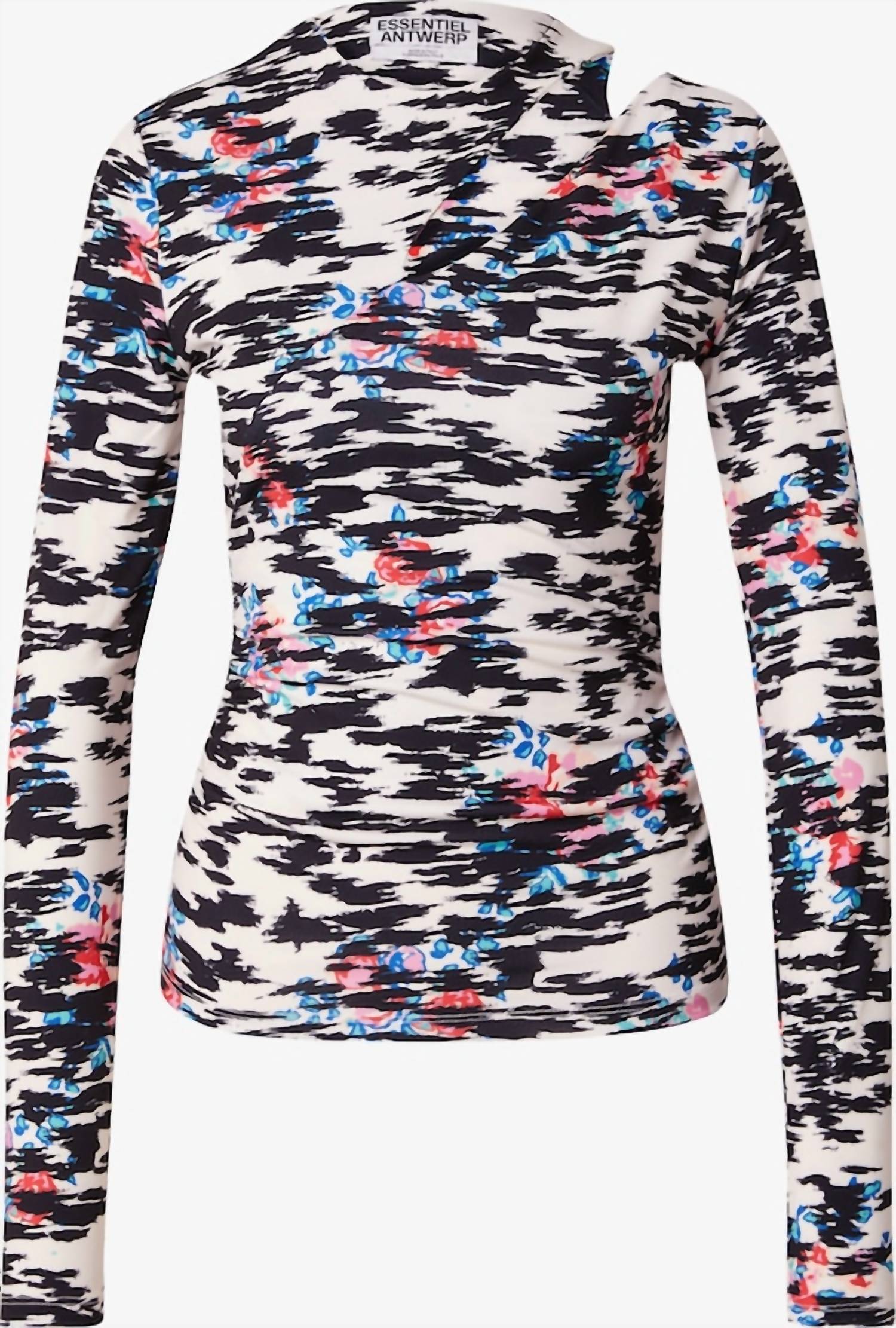 The perfect long sleeve tee that goes with just about anything. The Hallas Printed T-shirt by ESSENTIEL ANTWERP is a standout piece for those seeking style and comfort. This long-sleeve, slim-fit top is crafted from 92% polyester and 8% elastane, providing a stylish stretch-jersey that ensures a comfortable wear. Made in Italy, it showcases a chic graphic zebra-print with ruched detailing at the shoulders and waist, plus a fashionable cutout at the shoulder for an added edge. The pull-on closure and machine-washable care make it both practical and easy to maintain.